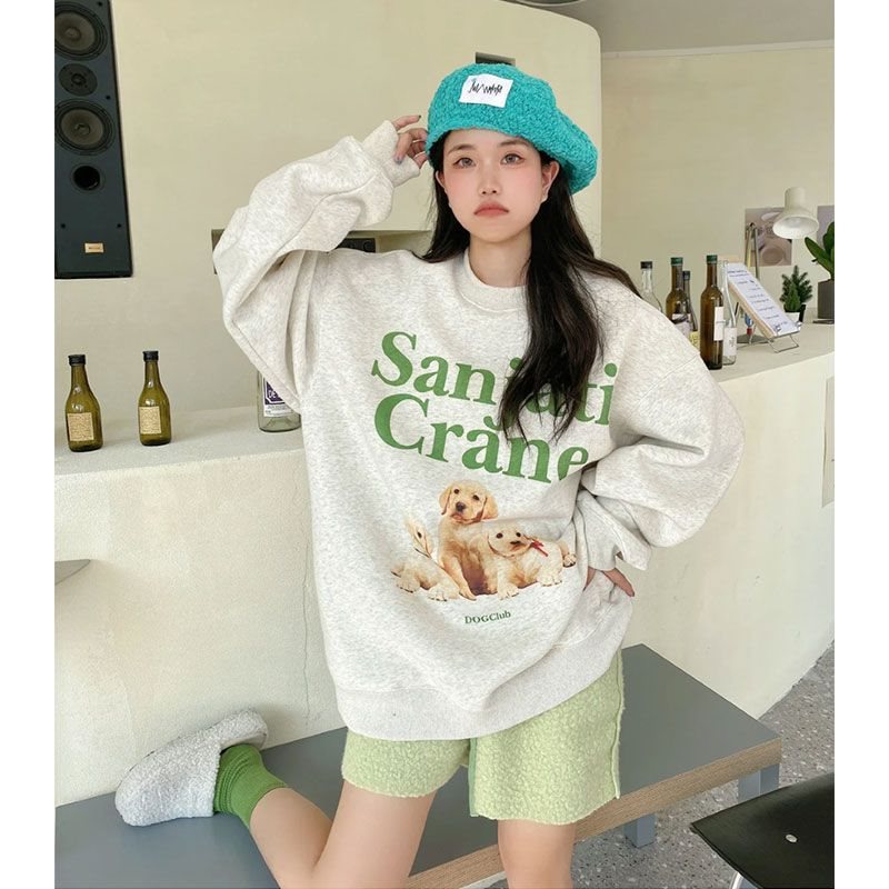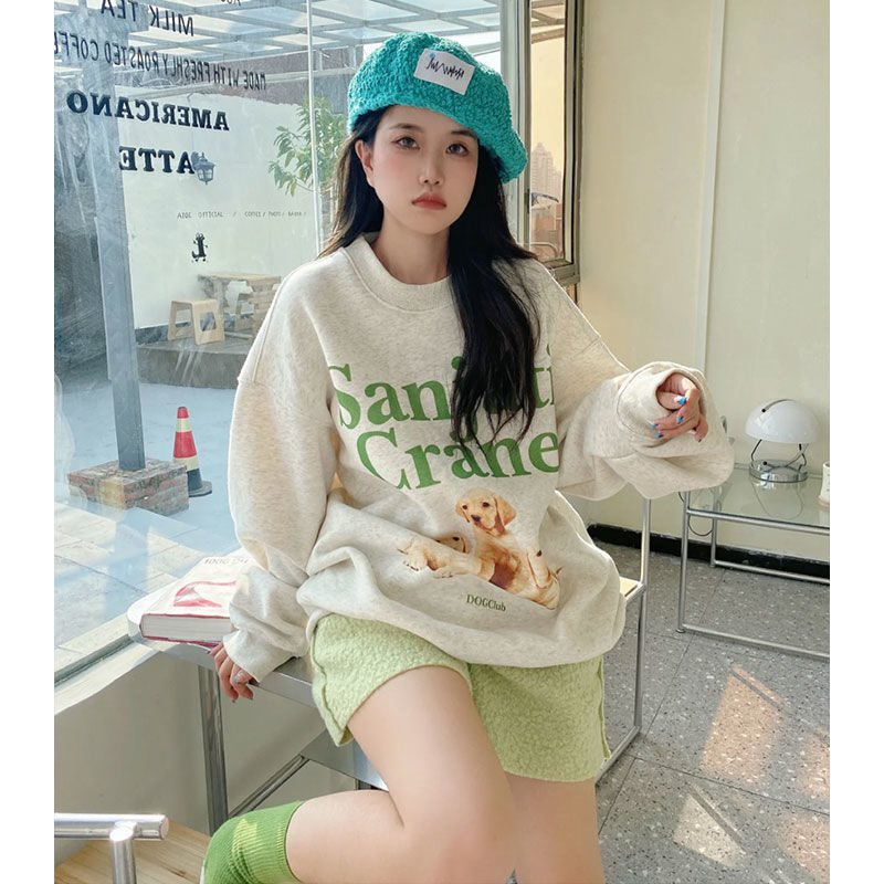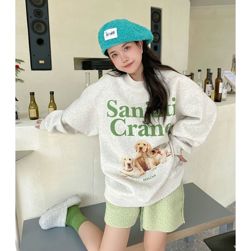 | nameOriginal | Vintage American Printed Sweatshirt Female Student Loose 2022 Spring and Autumn New Round Neck Pullover fleece-lined Top vibe Style |