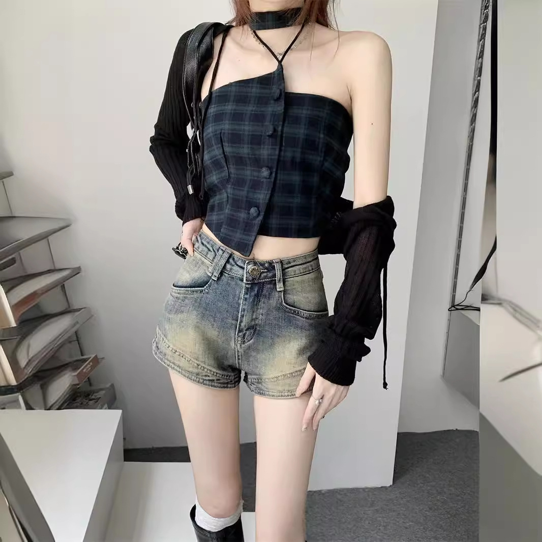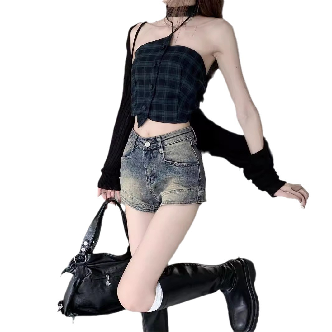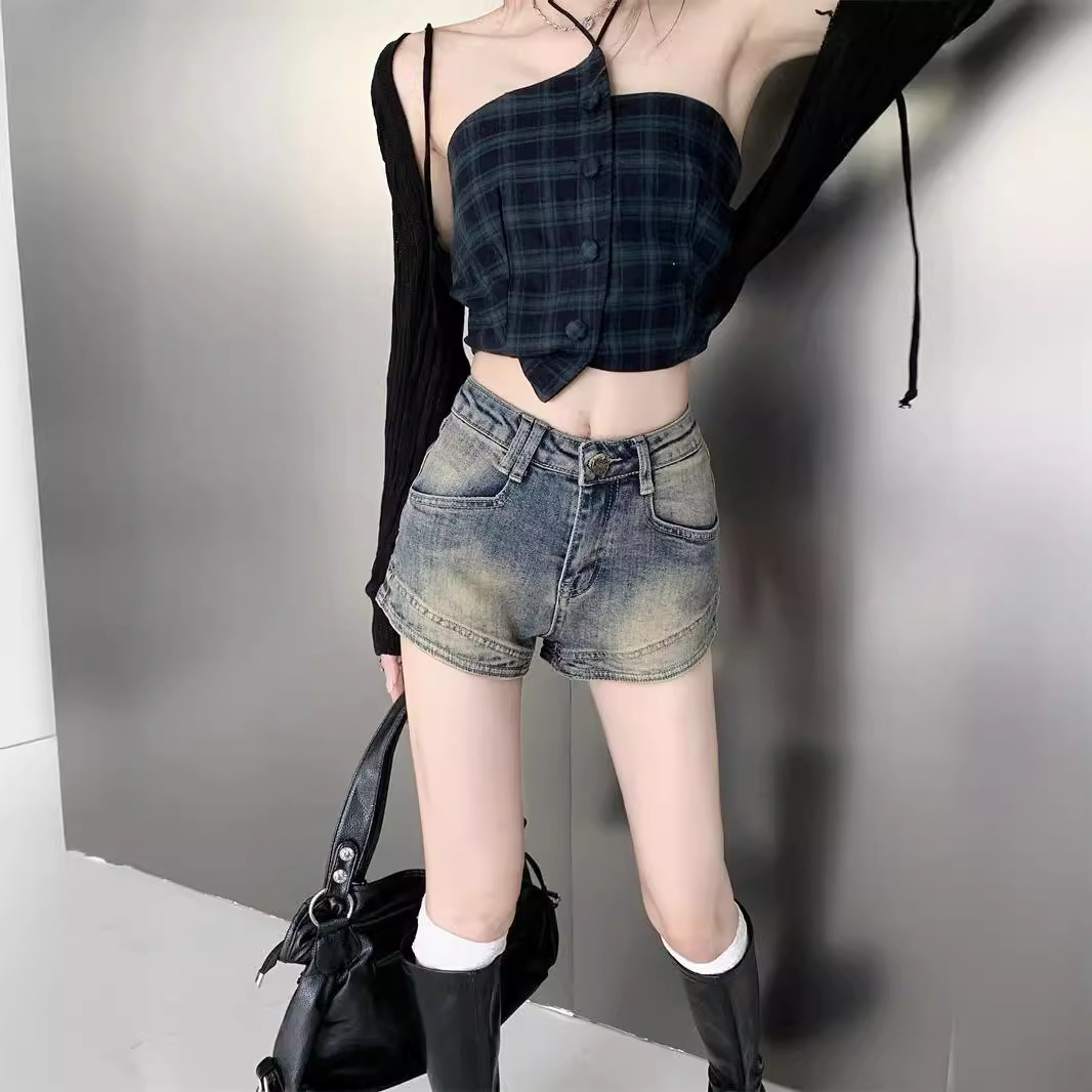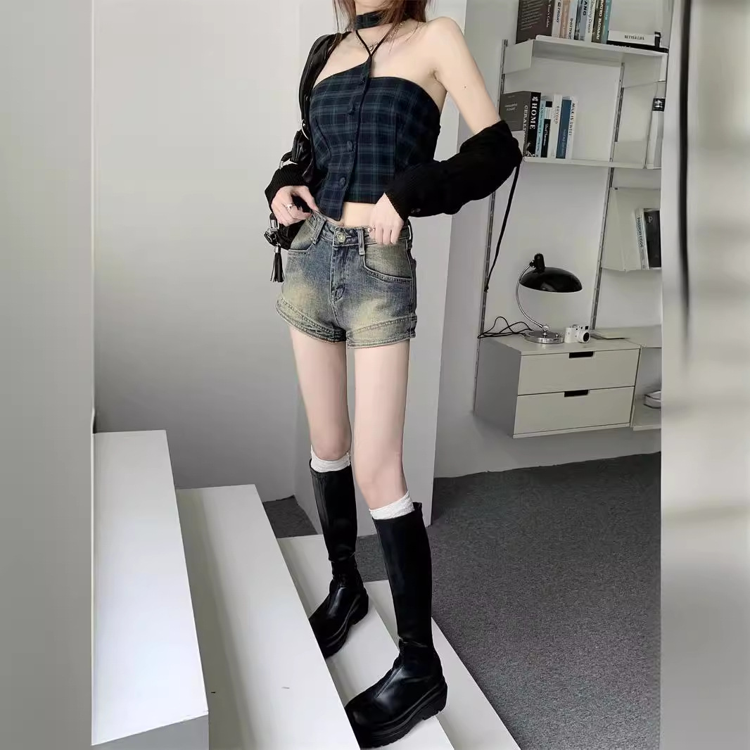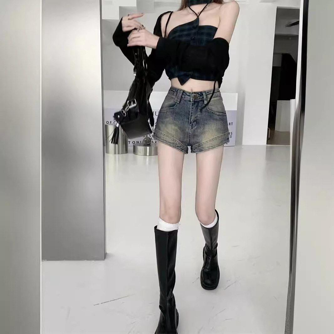 Vintage American Style High Street Denim Shorts Women's Niche High Waist Slim Look Hot Stretch Hot Pants 2024 Summer New Arrival
