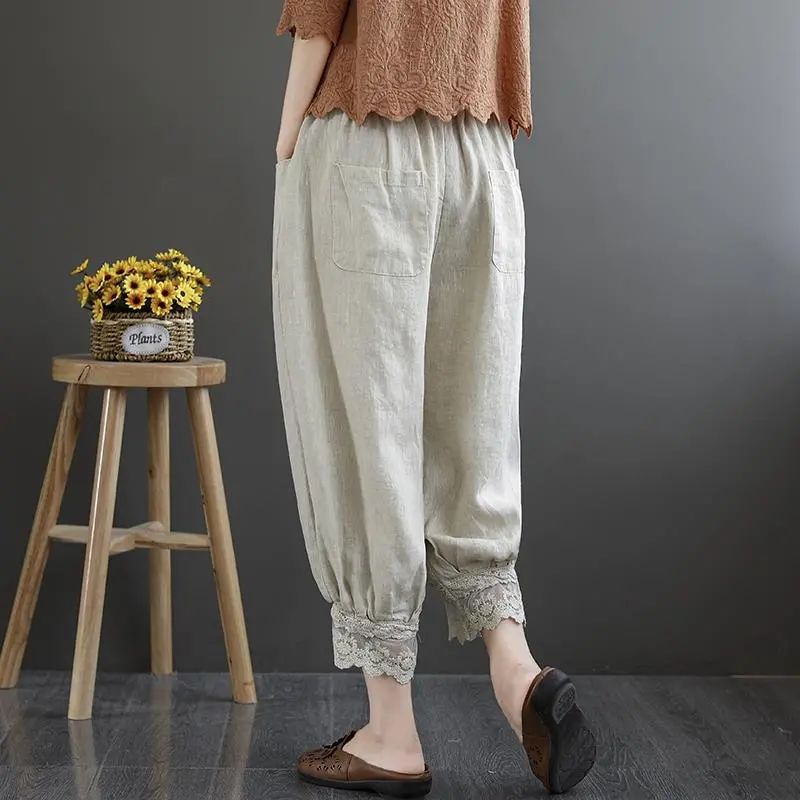| nameOriginal | Vintage Artistic Embroidered Linen Women's Pants Lace Stitching Cropped Pants Loose Cotton and Linen Pants Harlan Bloomers |