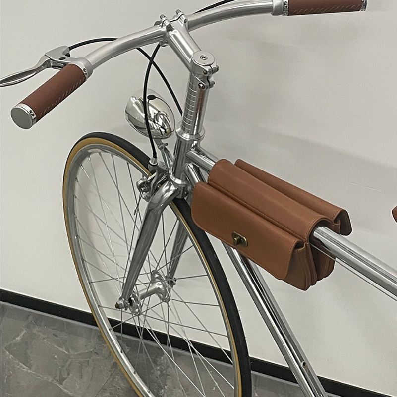 Vintage Bicycle Leather Packing Bag Side Bag Side Bag Riding Bag Upper Tube Cross Beam Front Beam Car Bar Bag Equipment Accessories