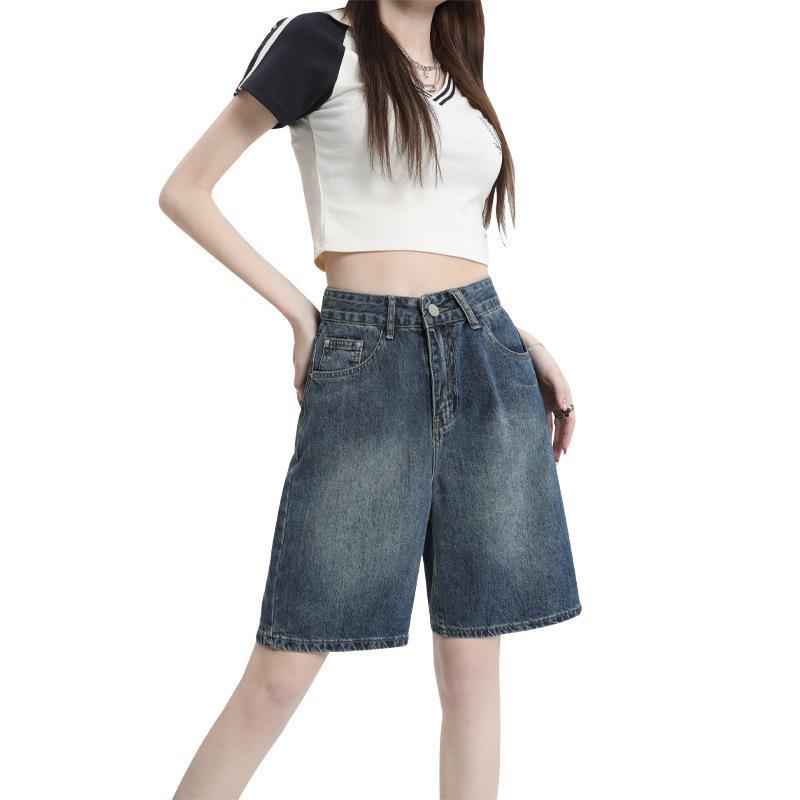 Vintage Blue Denim Shorts Women’s Summer 2023 Thin Five-point Pants Straight-leg Loose High Waist Slimming All-match Mid-length Pants