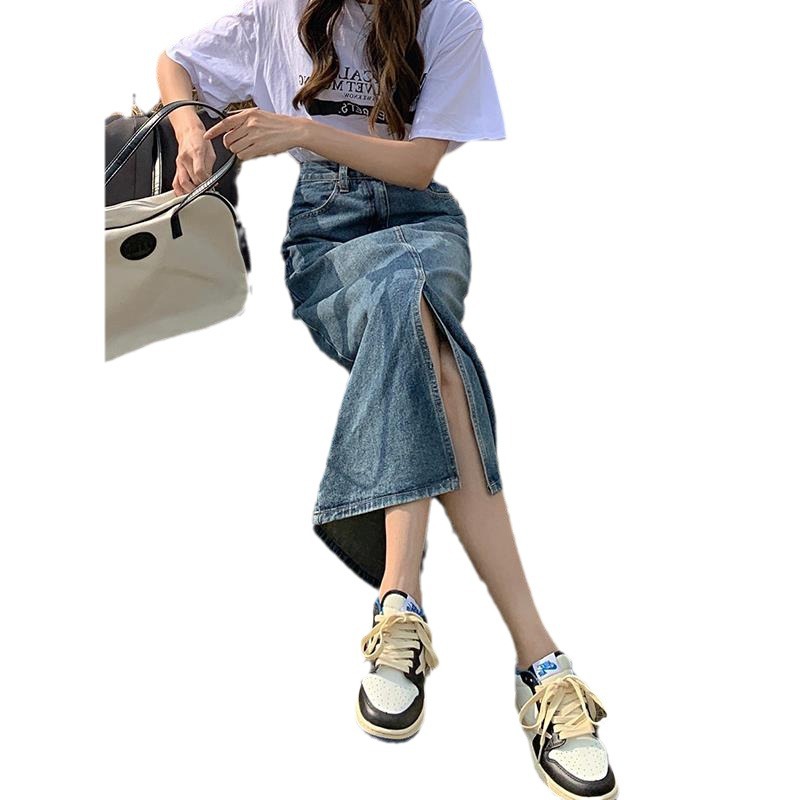 | nameOriginal | Vintage Blue Denim Skirt Women's 2024 Summer New High Waist Loose Slimming A- line Split Short Skirt |