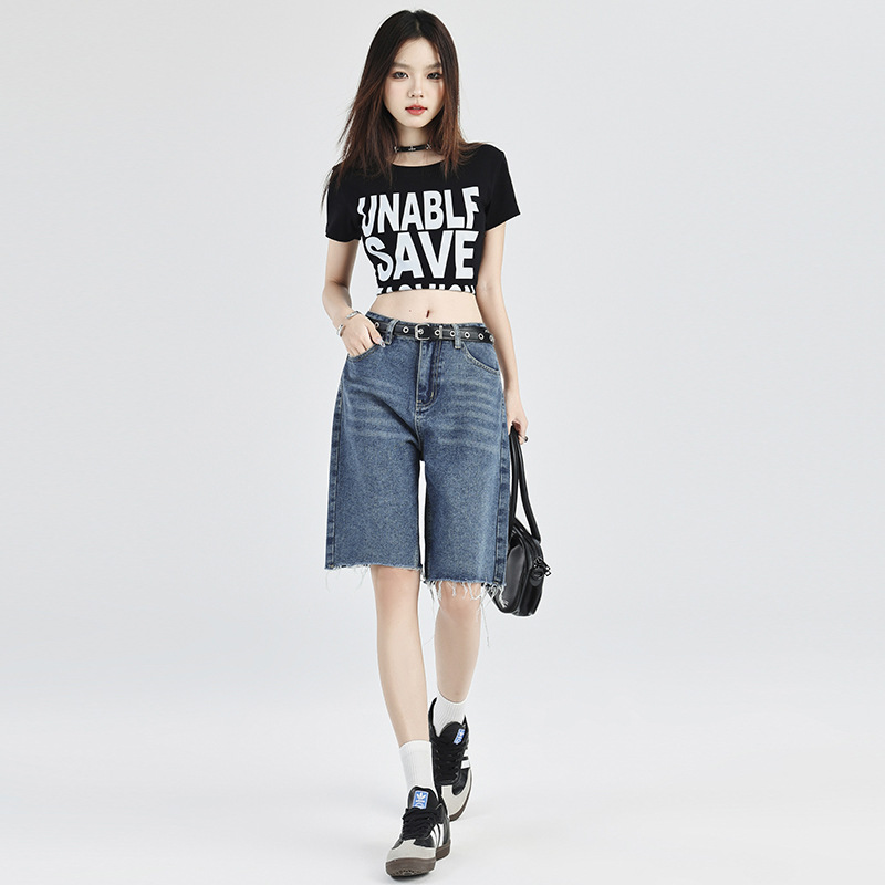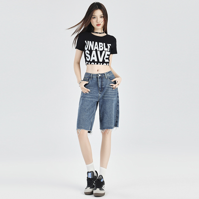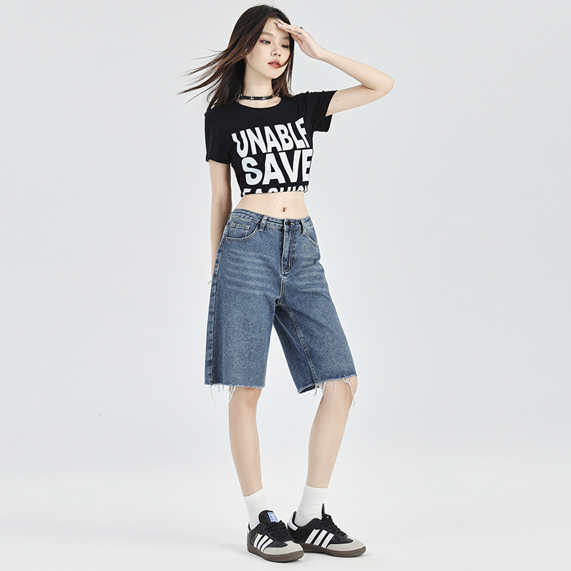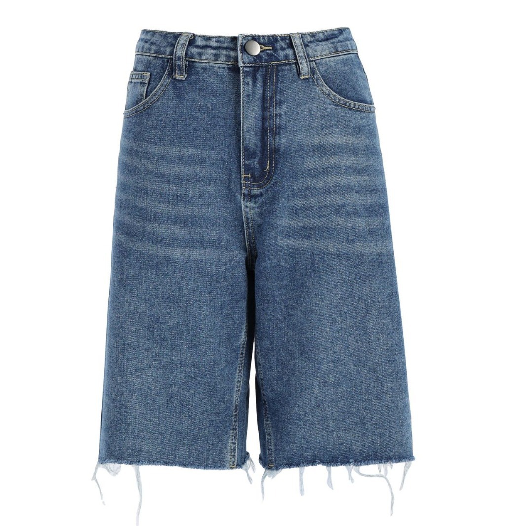 | nameOriginal | Vintage Blue Straight Five-point Jeans Women's 2024 Summer New Arrival American Style Rag Stretch High Waist Casual Shorts Trendy |