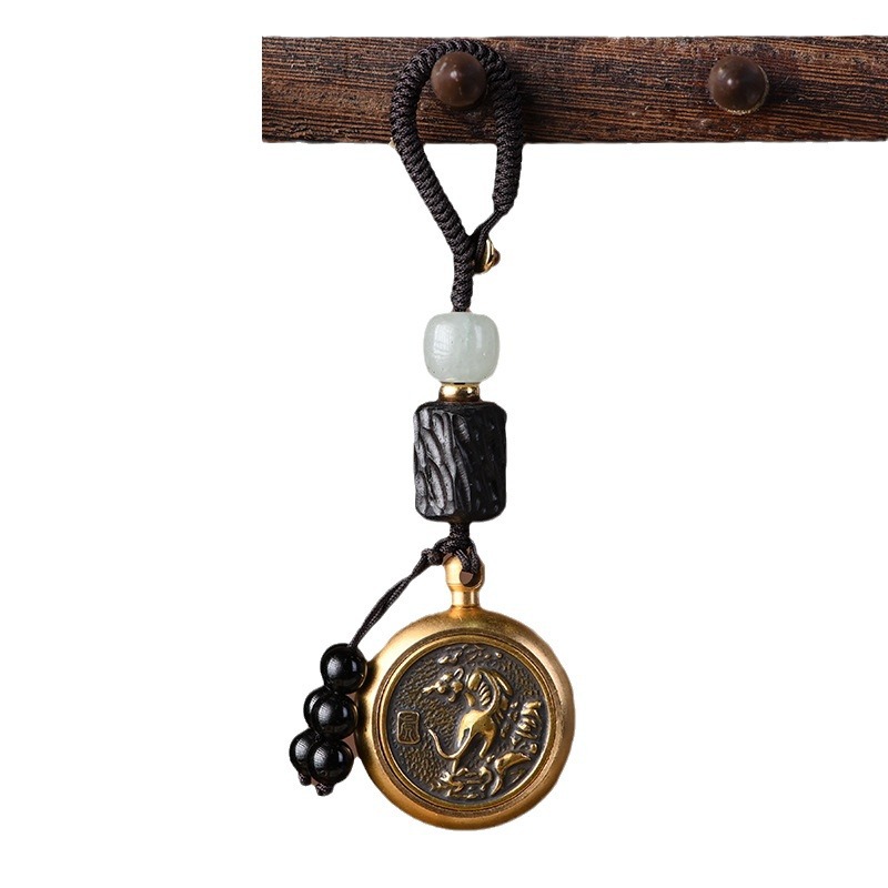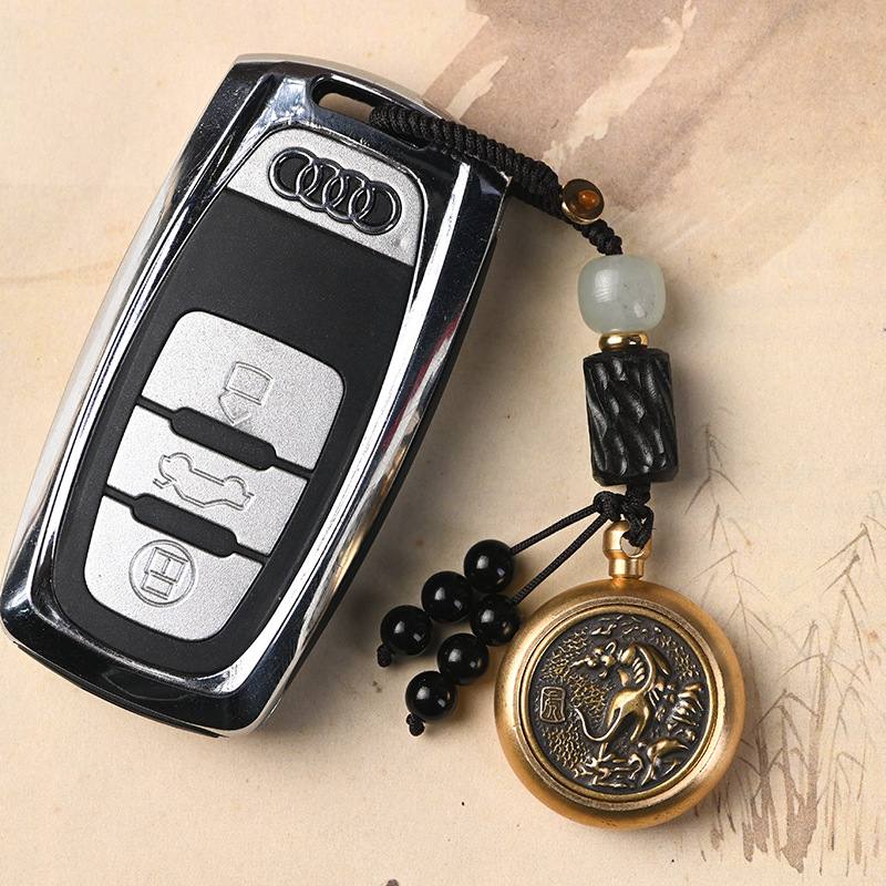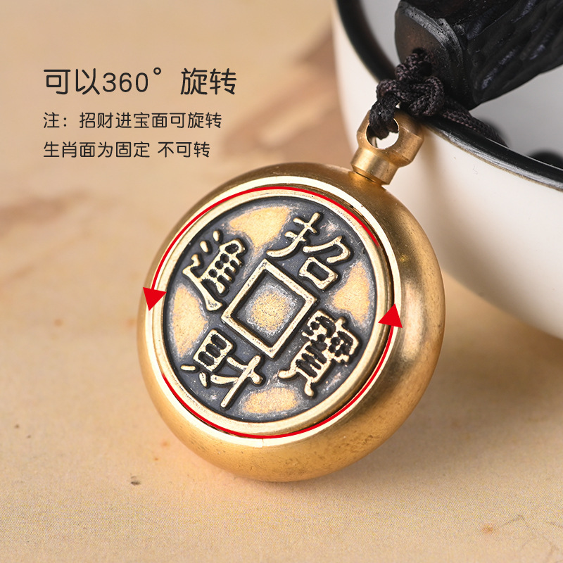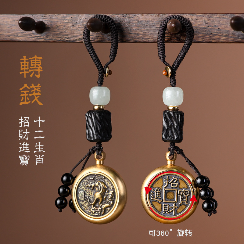 | nameOriginal | Vintage Brass Turn Key Chain Pure Copper Zodiac Turn Money Money Hand Handle Car Key Chain Pendant for Men |