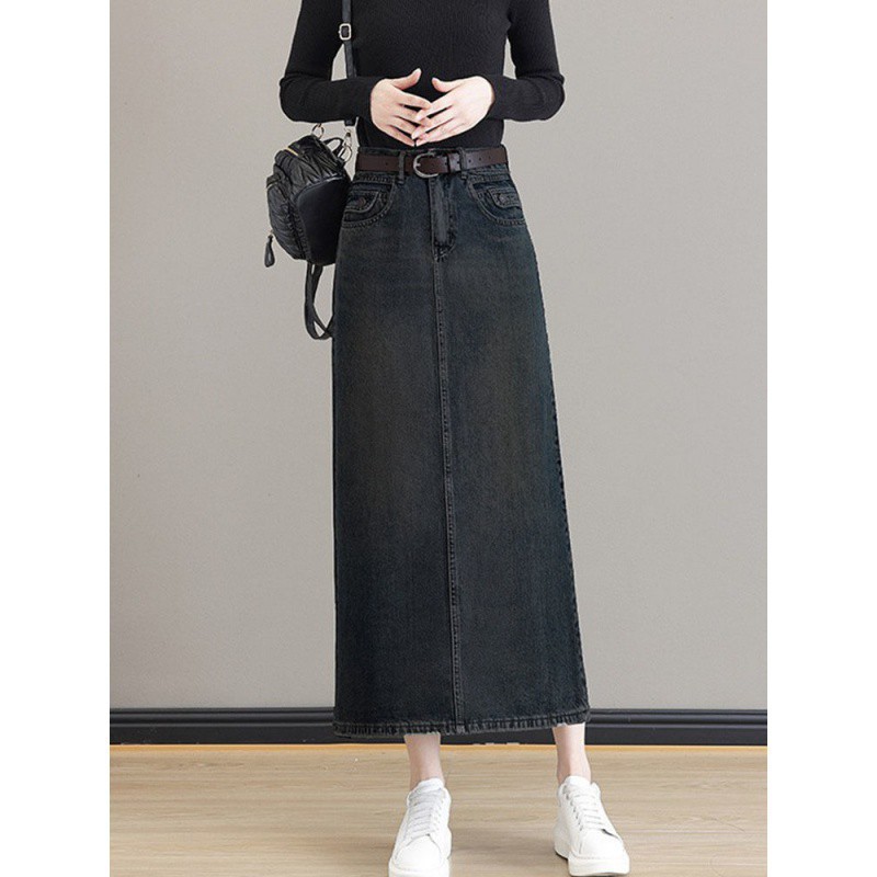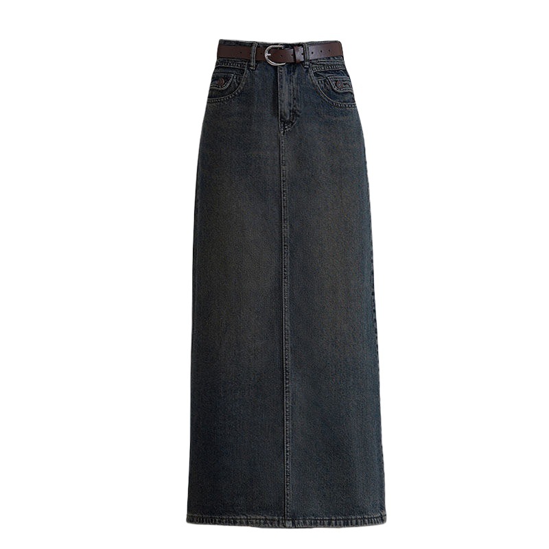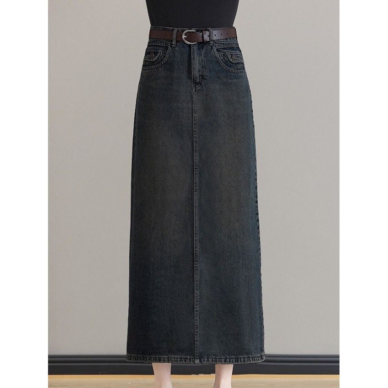 | nameOriginal | Vintage Cement Grey Denim Skirt Women's Spring and Autumn plus size Chubby Hip High Waist Slimming Straight Step Long Skirt |