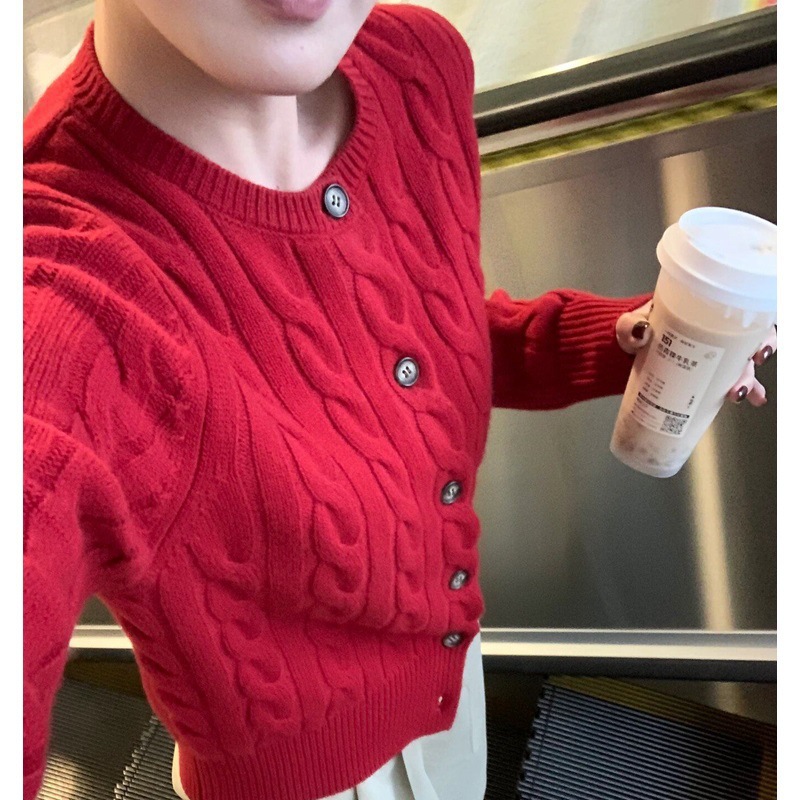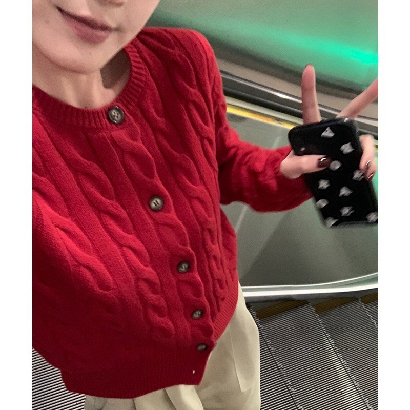 | nameOriginal | Vintage Chanel Style Sweater Coat Women's Autumn and Winter Base Style Red Knitted Cardigan Twist Top |
