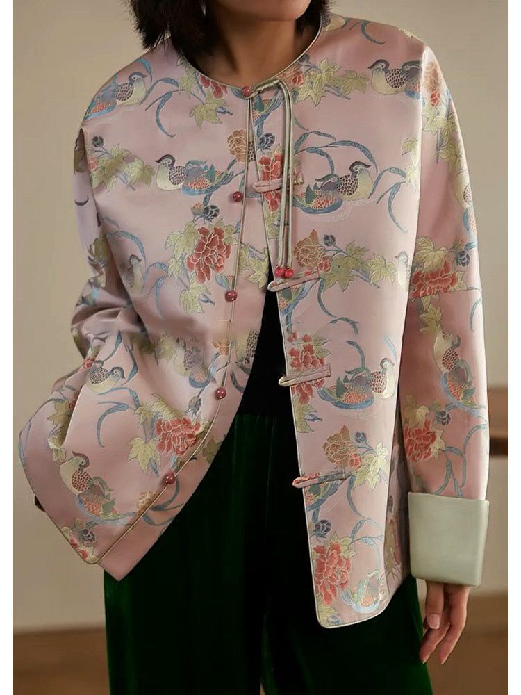 | nameOriginal | Vintage Chinese Style Improved Tang Embroidered Jacquard Shirt Top New Chinese Style Xiangyun Yarn Zen Pink Coat |