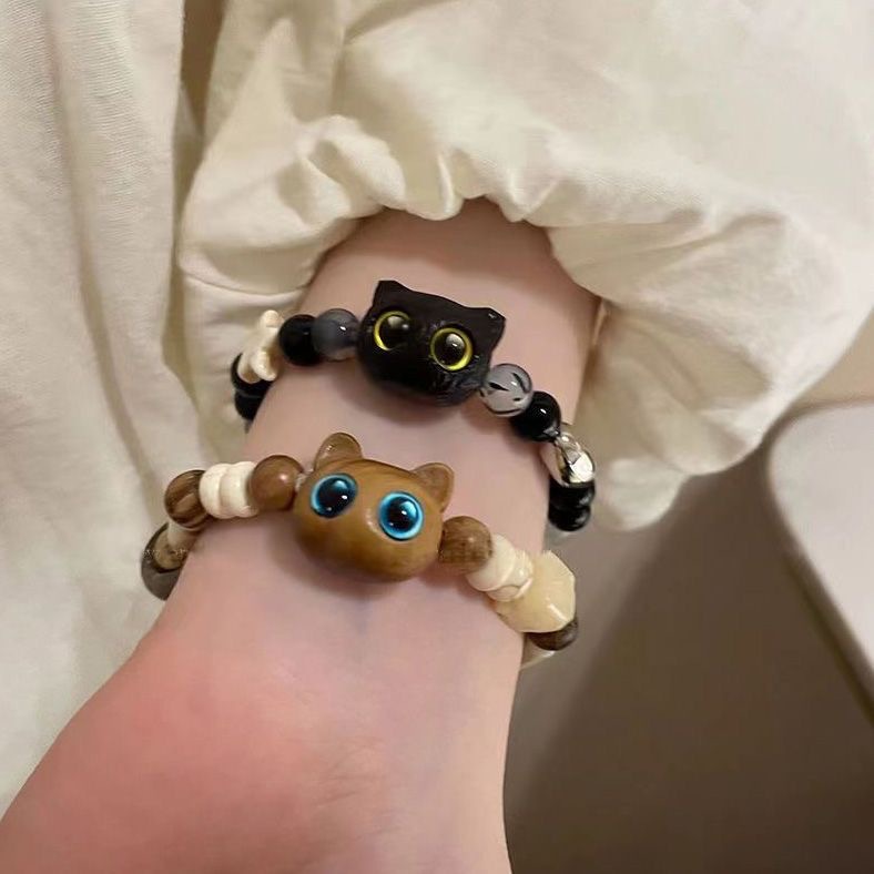 | nameOriginal | Vintage Couple's Cute Handmade Beaded Kitten Bracelet Wooden Bracelet Niche Ins High-end Bracelet |