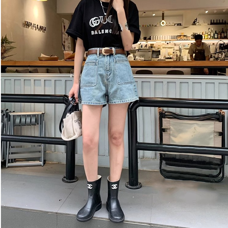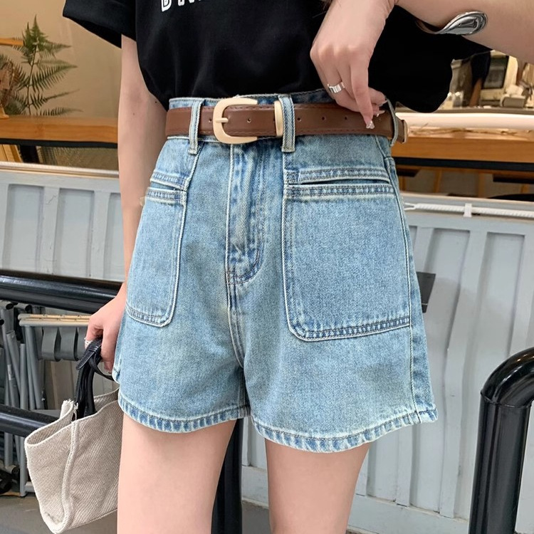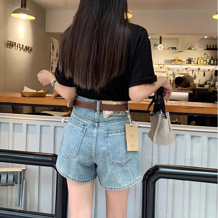Vintage Denim Shorts Women's 2024 New Simple High Waist Pocket A Word Slimming All-match Wide Leg Pants Summer High-end Sense