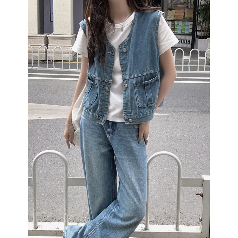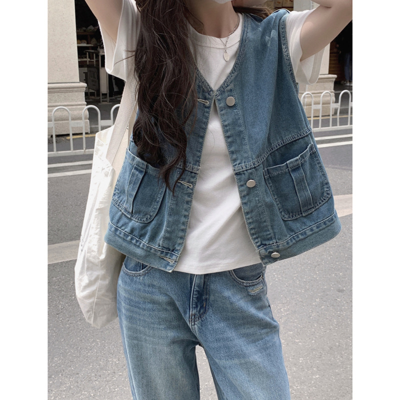 | nameOriginal | Vintage Denim Vest Women's Small Loose Age-reducing Hong Kong Style Short V-neck Japanese Style Vest Thin Stacked Vest |