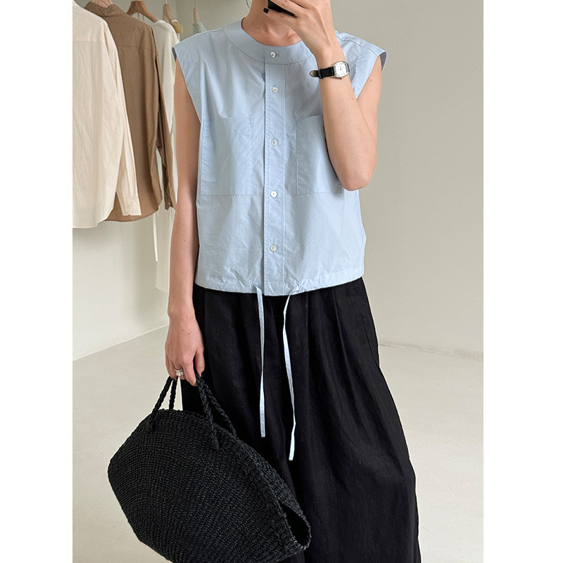 Vintage Drawstring Tooling Vest Women’s 2024 Thirteen Line Summer New Korean Style Pocket Design Vest Women’s 52360