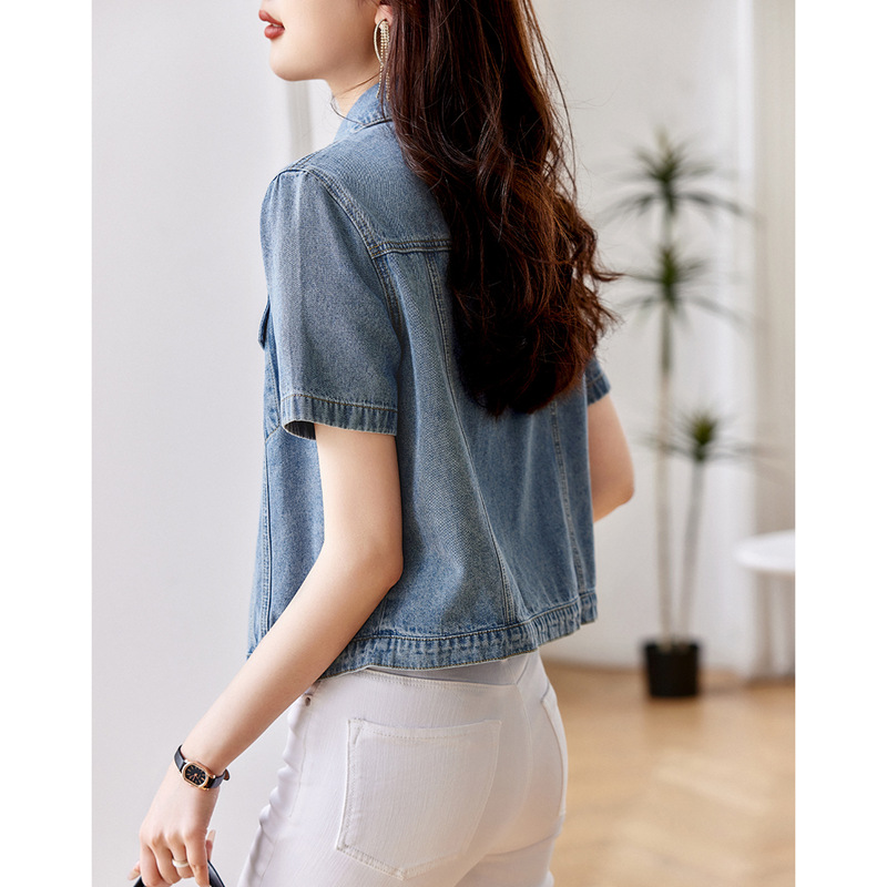 Vintage Elegant Thin Denim Jacket Women's 2023 Summer New Fashion All-match Commuter Short-sleeved Jacket