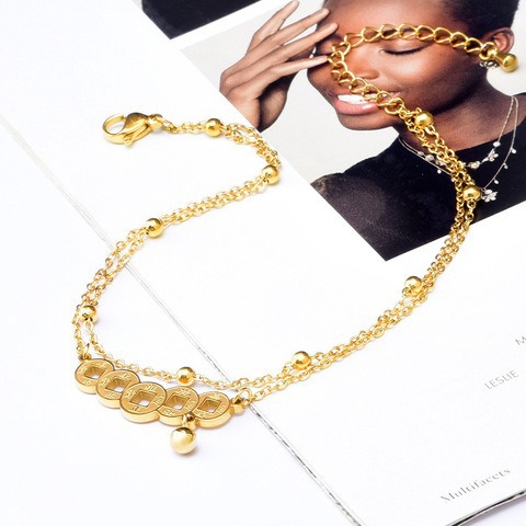 Vintage Five Emperors Copper Titanium Steel Non-fading Anklet Foot Chain Female Niche Design Bell Foot Bare Chain Sexy Foot Chain