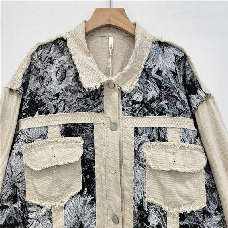 | nameOriginal | Vintage High Street Floral Jacquard Stitching Jacket Men's and Women's Spring and Autumn American High-end Niche Loose Top Jacket |