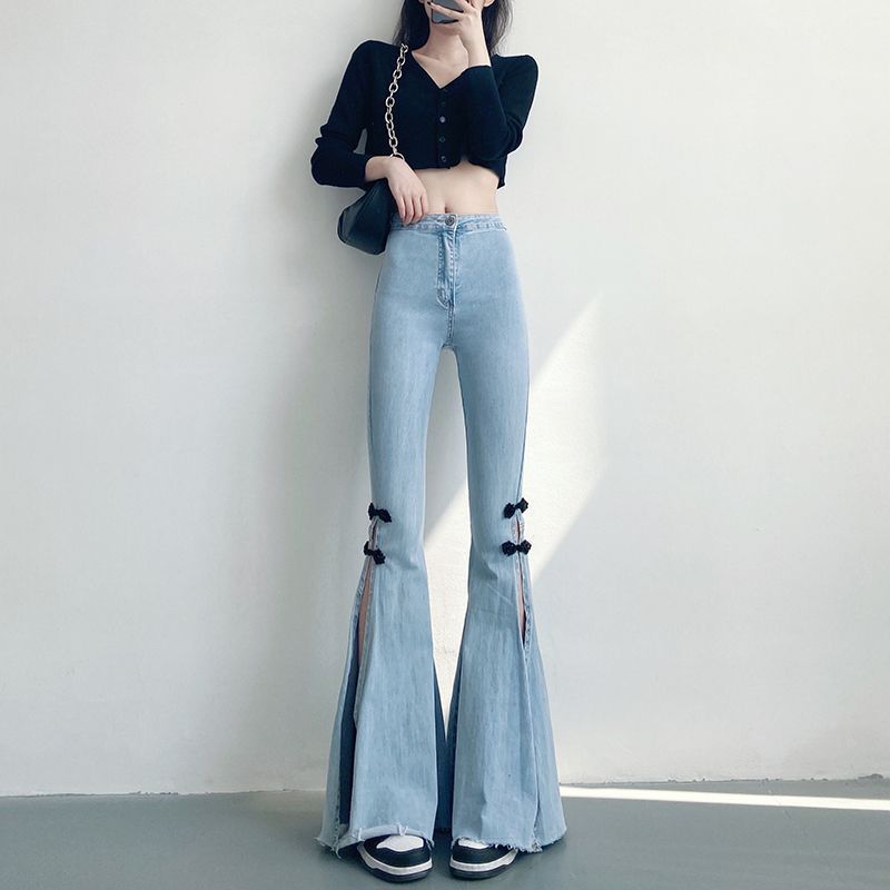| nameOriginal | Vintage High Waist Split Sizzling Jeans Women's 2024 Summer New Slim-Fit Slimming Flared Pants |