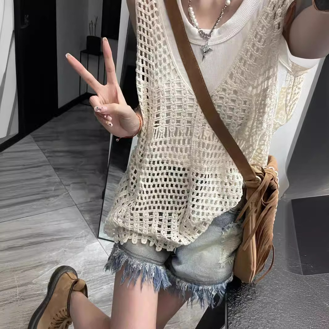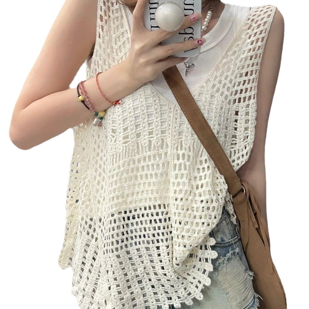 | nameOriginal | Vintage Hollow Knitted Vest Vest Women's Summer Niche Design Sense Outer Wear Spice Girls Sleeveless Waistcoat Short Top |