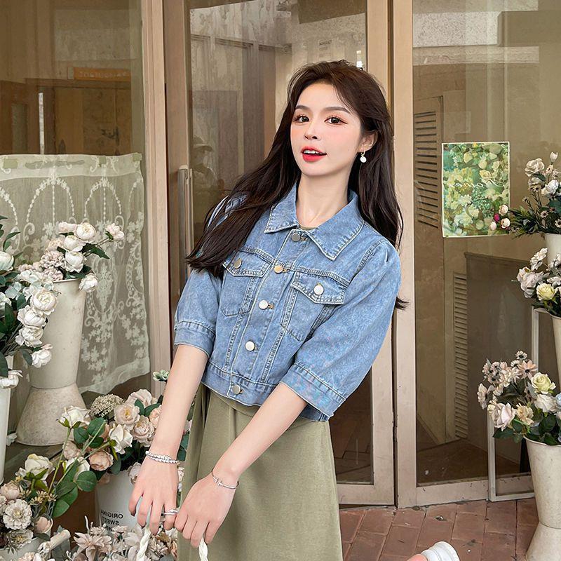 | nameOriginal | Vintage Hong Kong Style Denim Jacket Women's 2024 Summer New Casual All-match Commuter Washed Short Jacket Trendy Top |