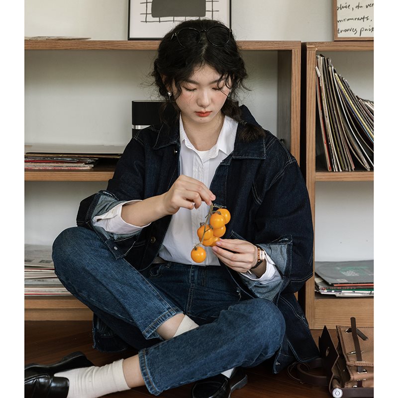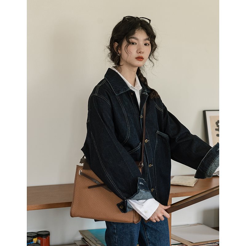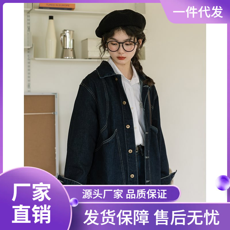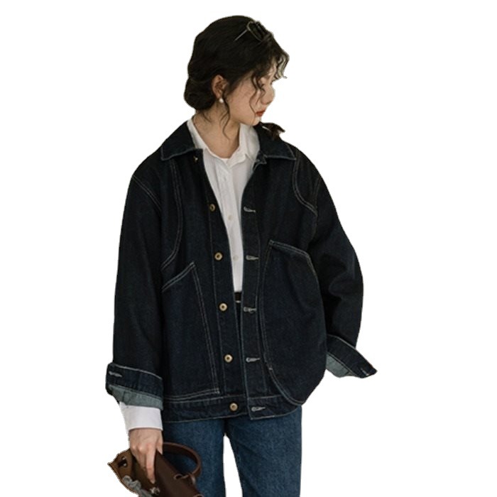 | nameOriginal | Vintage Hong Kong Style French Denim Jacket Women's Spring New Design Sense Niche Japanese Style Dark Blue Top Jacket Trendy |