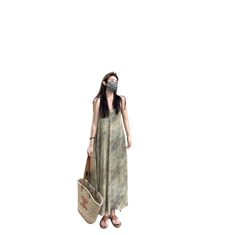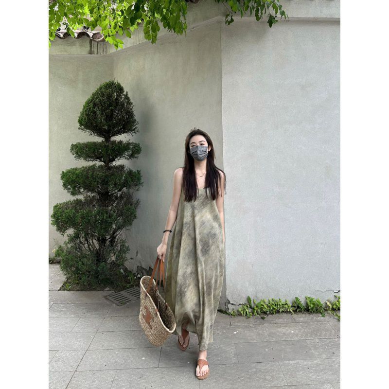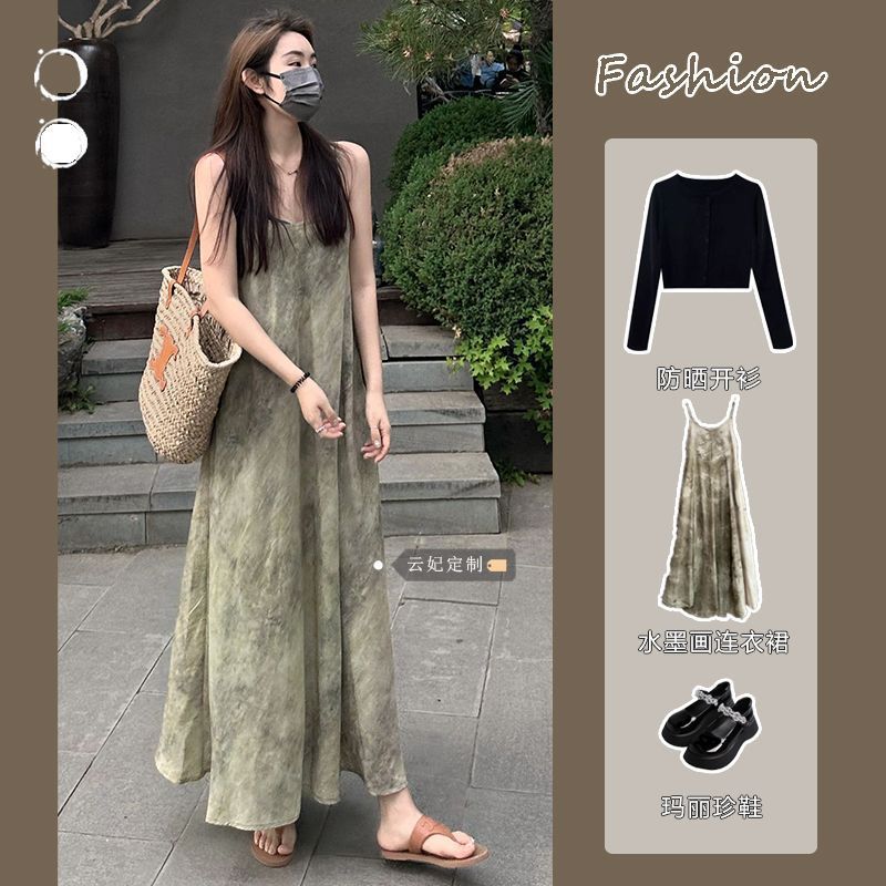 | nameOriginal | Vintage Hong Kong Style Ink Painting dress suit Women's Summer Thin Sunscreen Cardigan New Chinese Style Elegant Long Dress with Sling |