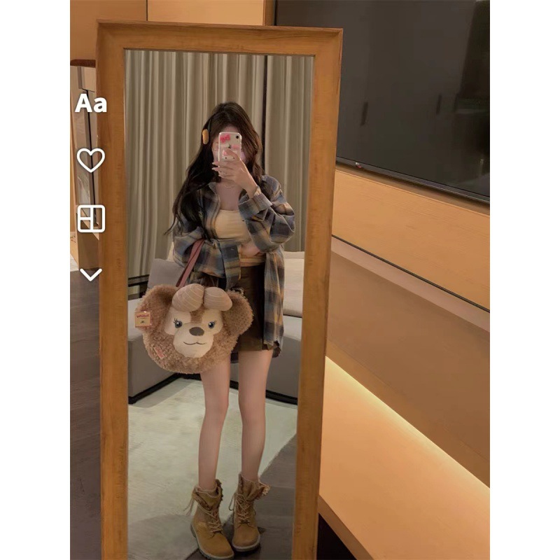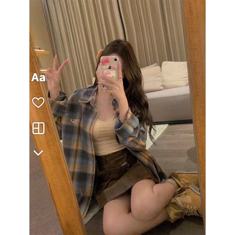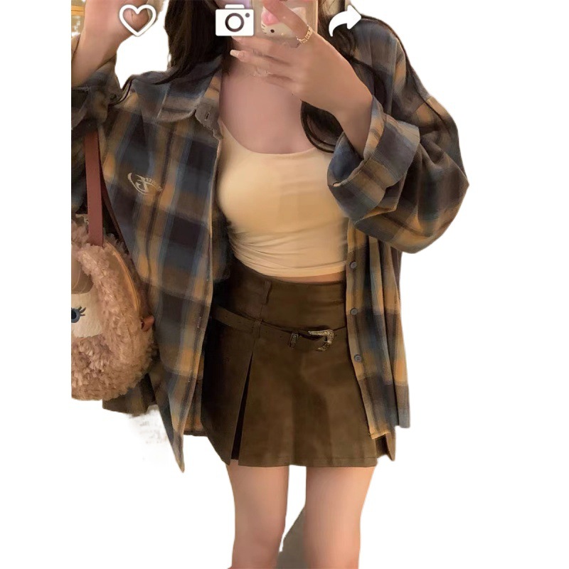 | nameOriginal | Vintage Hong Kong Style Korean Style Loose Plaid Long Sleeve Shirt Top |