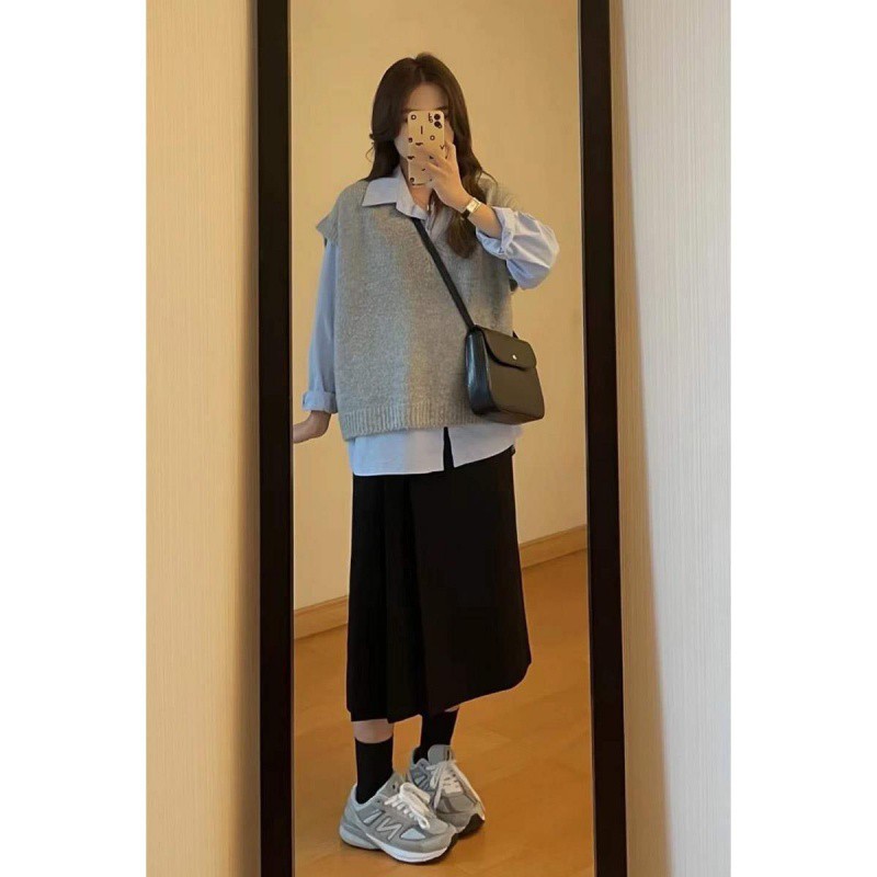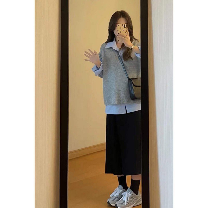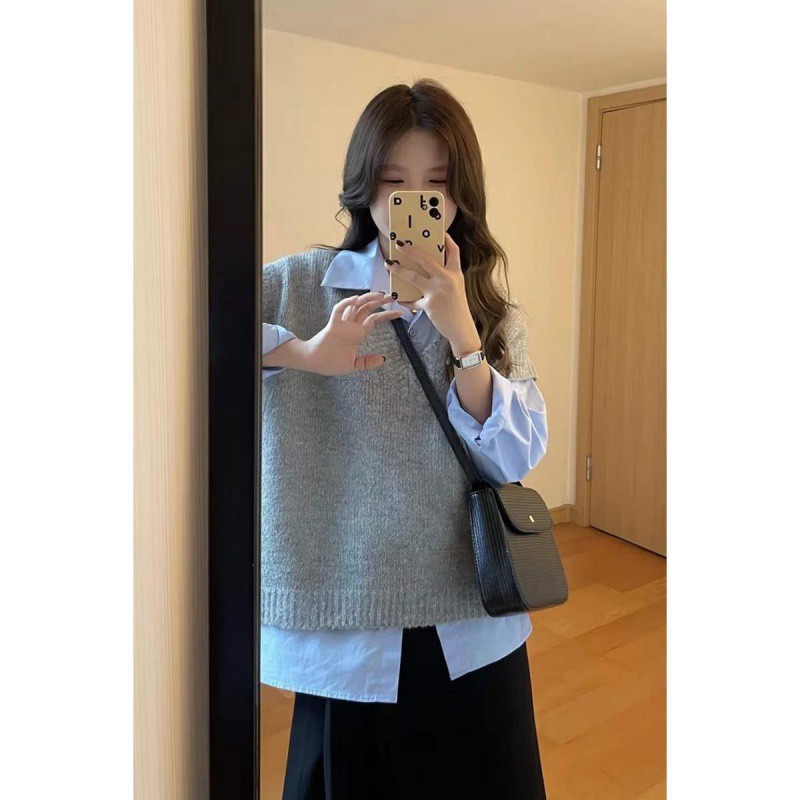 | nameOriginal | Vintage Hong Kong Style Shirt Knitted Vest Women's Two-Piece Sweet and Salty Little People College Style suit Spring and Autumn Dress |