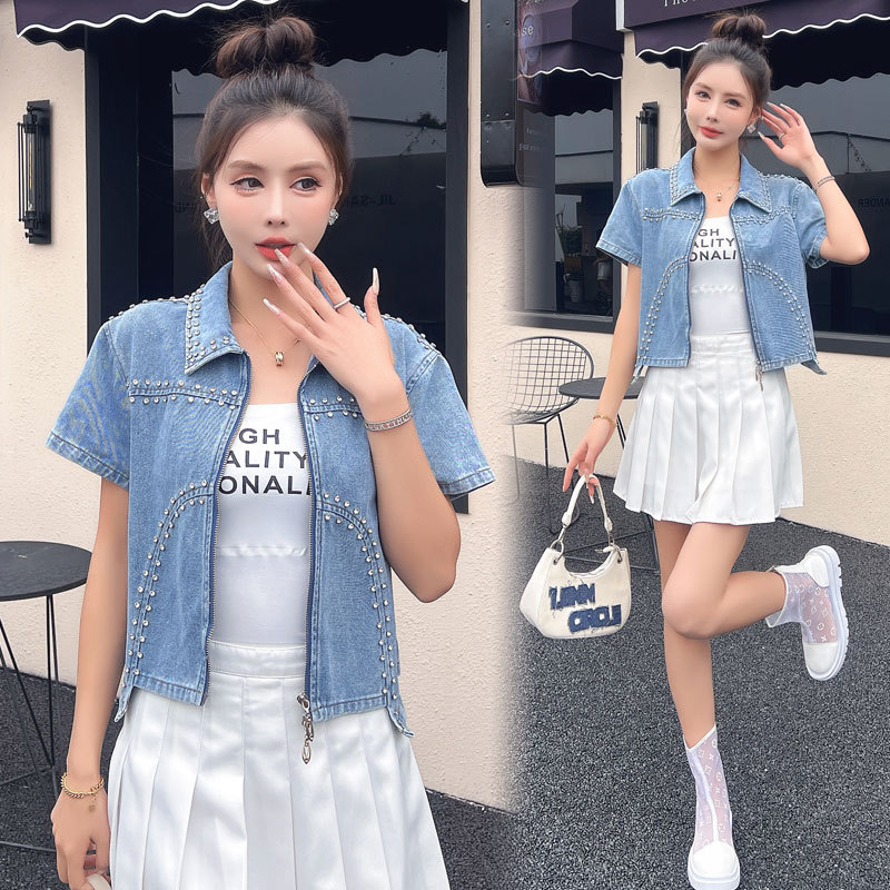 | nameOriginal | Vintage Hong Kong-style Zipper Denim Vest Jacket Women's Summer Fashion Western Style Loose All-match Short-sleeved Denim Vest |