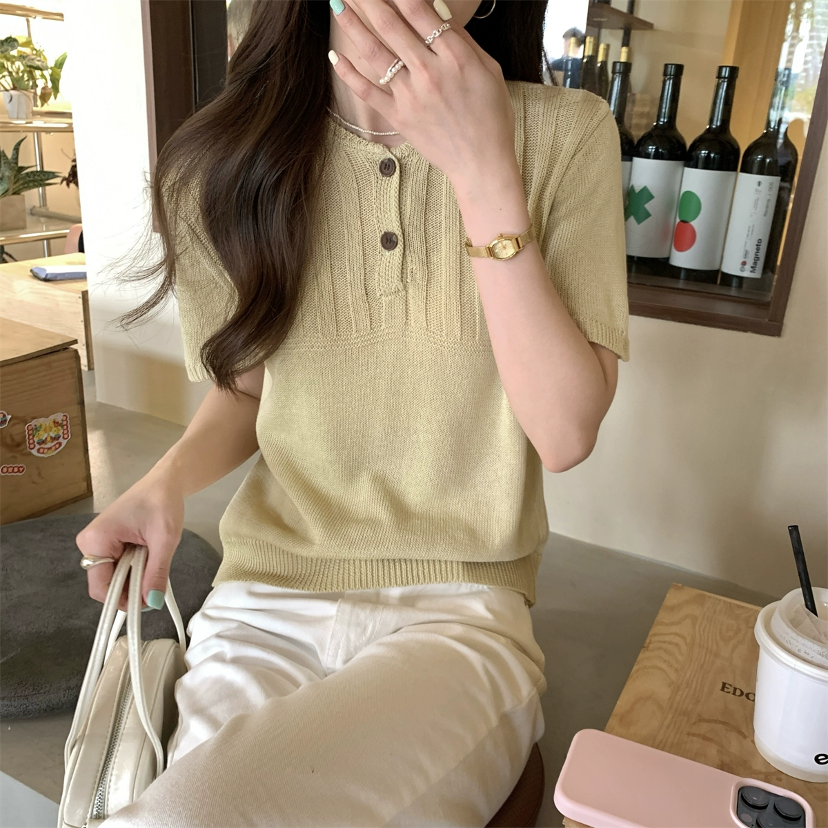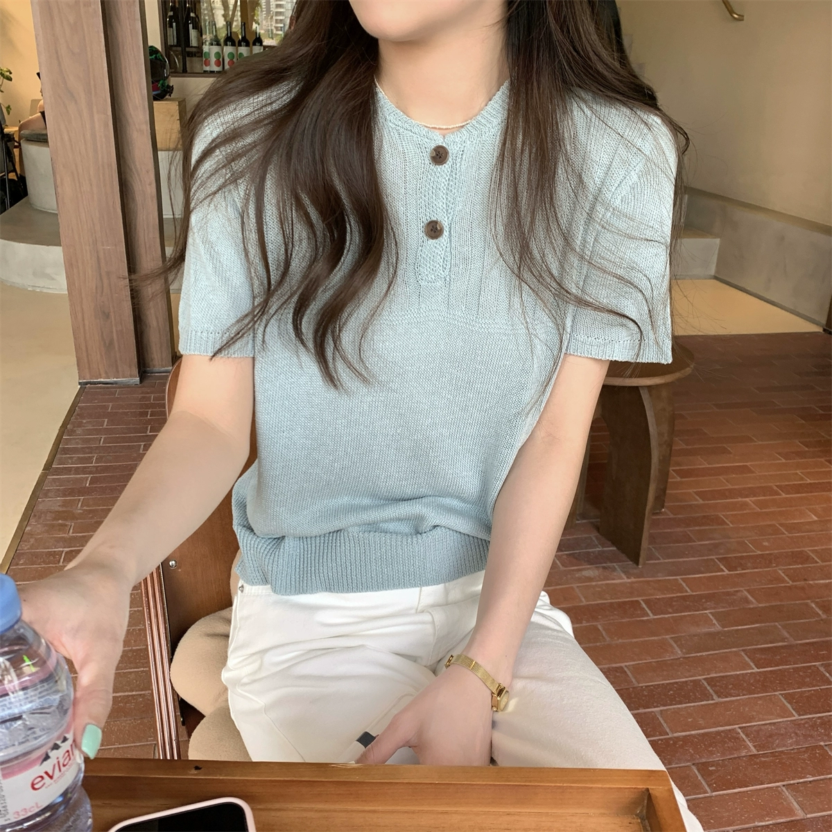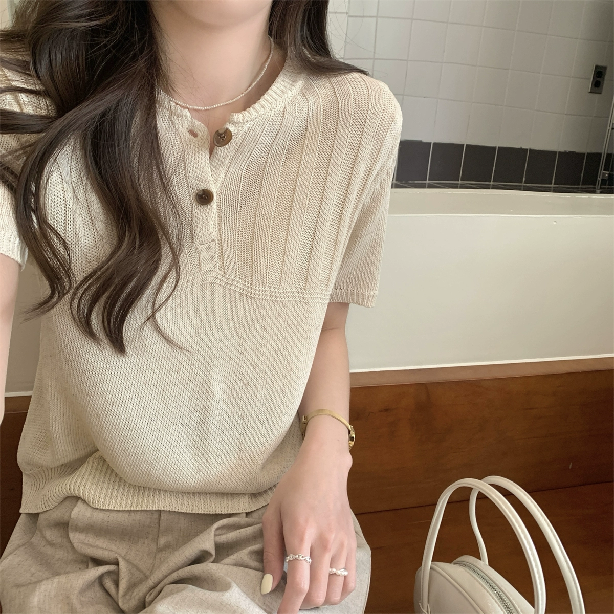 | nameOriginal | Vintage imitation linen crew neck button-down short-sleeved sweater |