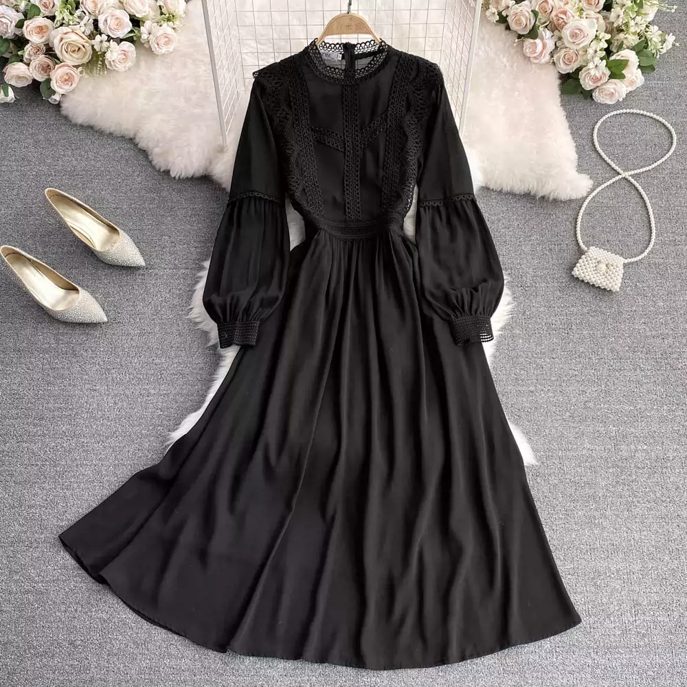 | nameOriginal | Vintage lace balloon sleeve chiffon elegant dress |