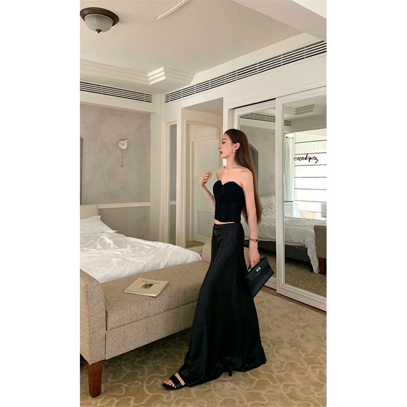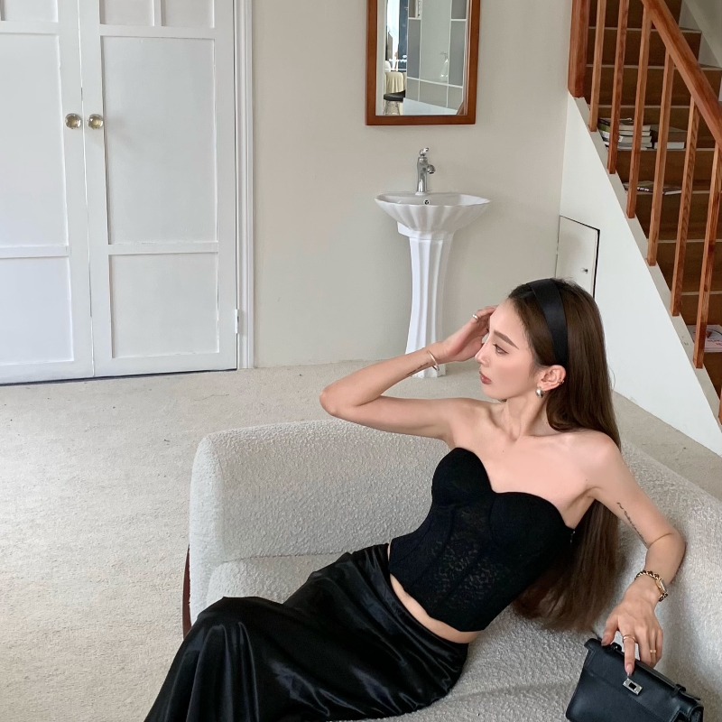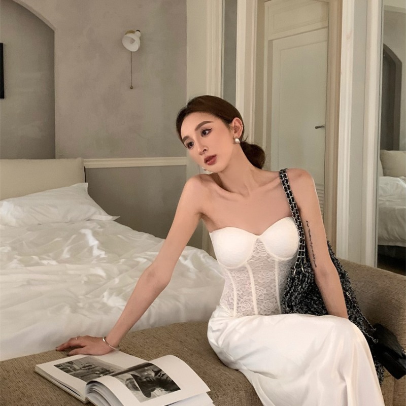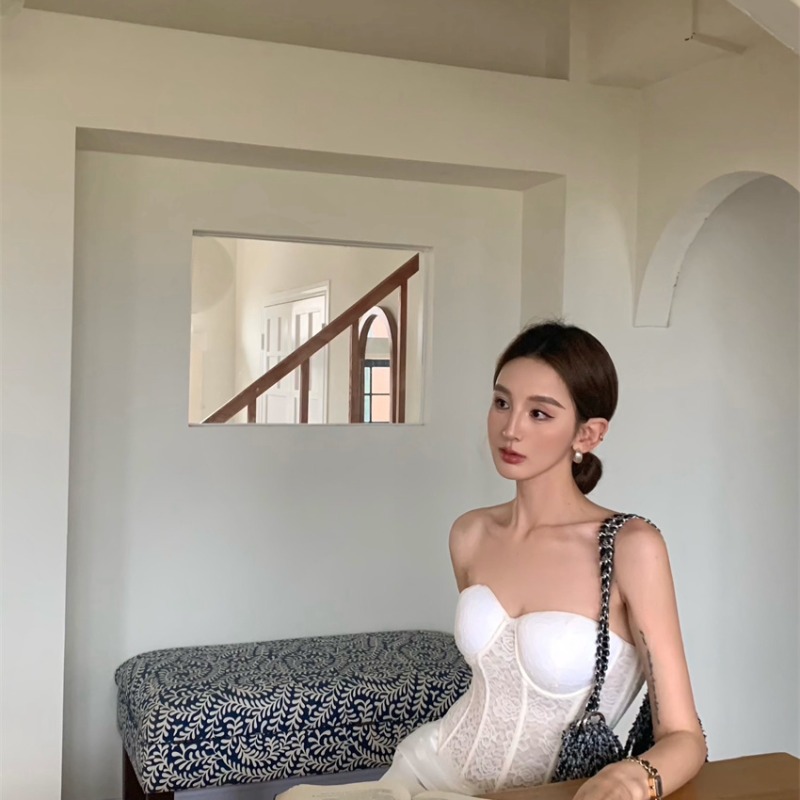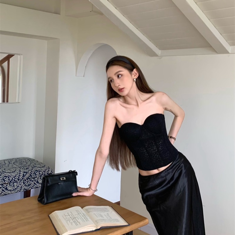 | nameOriginal | Vintage Lace Fishbone Strapless Top Shoulder Clavicle Spring suit Women's A- line Skirt High Waist Long Skirt |
