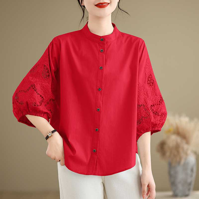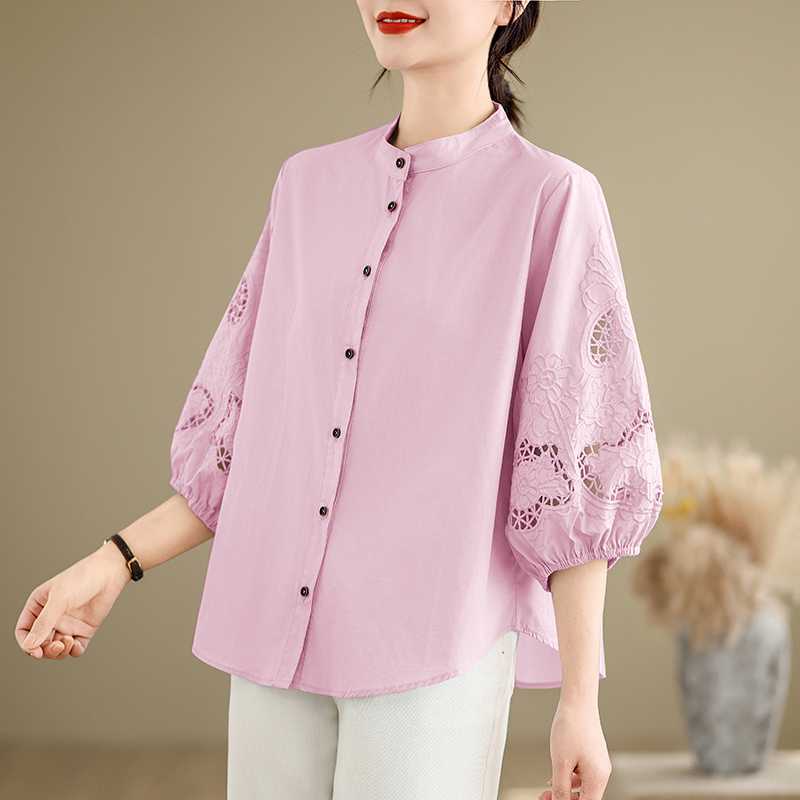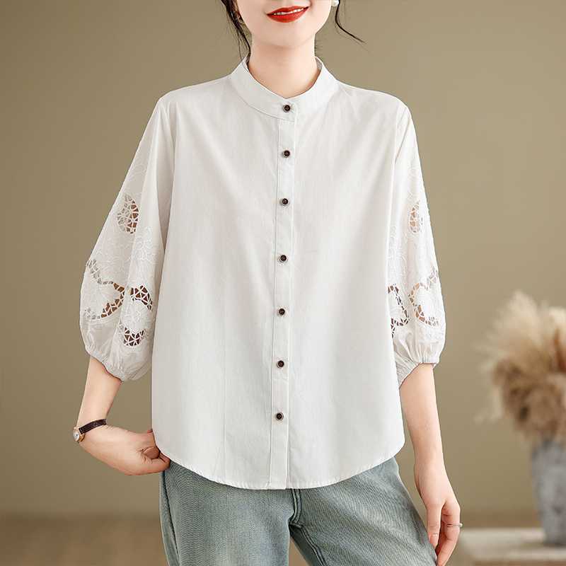 | nameOriginal | Vintage Lantern Sleeve Artistic Fashion Collar Loose plus size Embroidered Flower Hollow Design Niche Shirt Women's Top |
