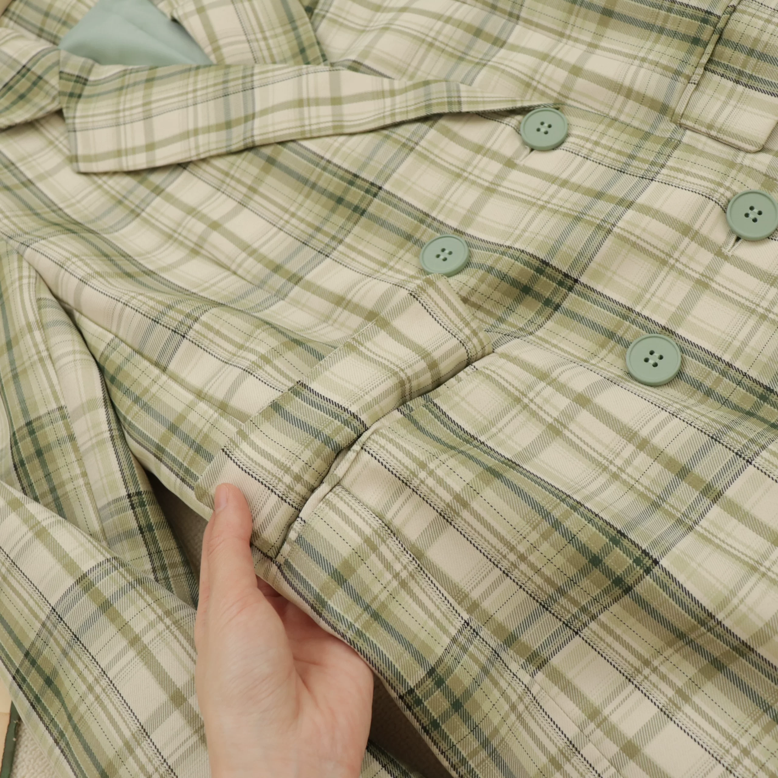 | nameOriginal | Vintage lapel double-breasted plaid pleated skirt suit |