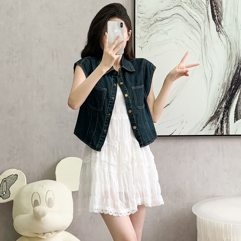 Vintage Lapel Small Flying Sleeve Denim Short Coat Women's Summer 2024 New Arrival Small All-match Trendy Top