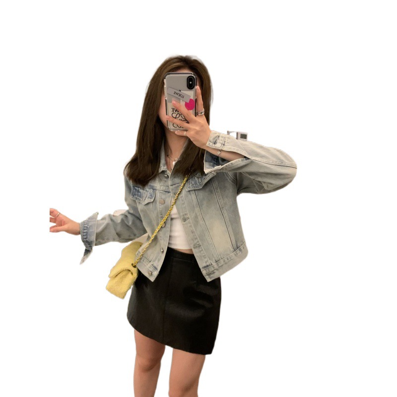 | nameOriginal | Vintage light blue American Denim Coat Women's 2024 Spring New Short Casual Loose Top |