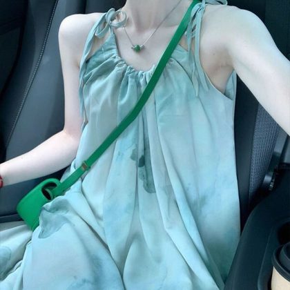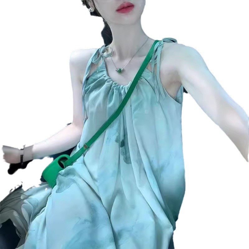 | nameOriginal | Vintage Long Dress Tie-Dye Backless Skirt New 2024 New Chinese Ink Painting Sling dress Women's Summer Elegant |