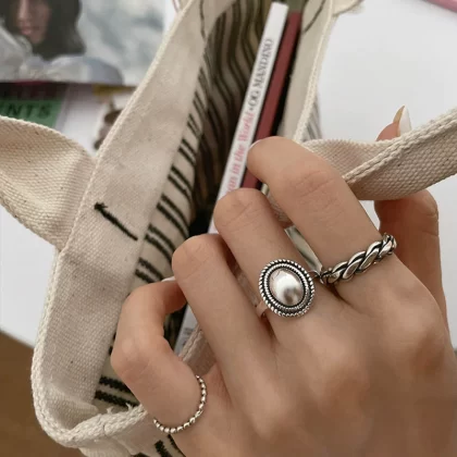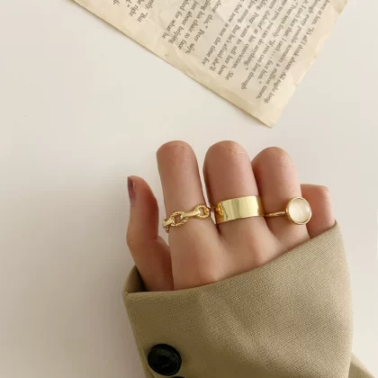 | nameOriginal | Vintage metal ring set 3-piece chain opening ring ring 3-piece set |