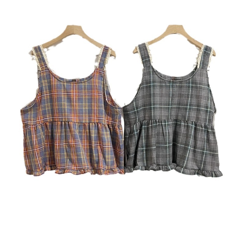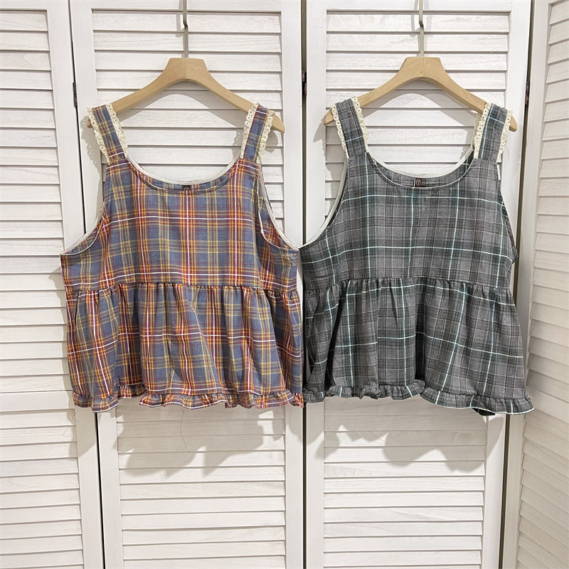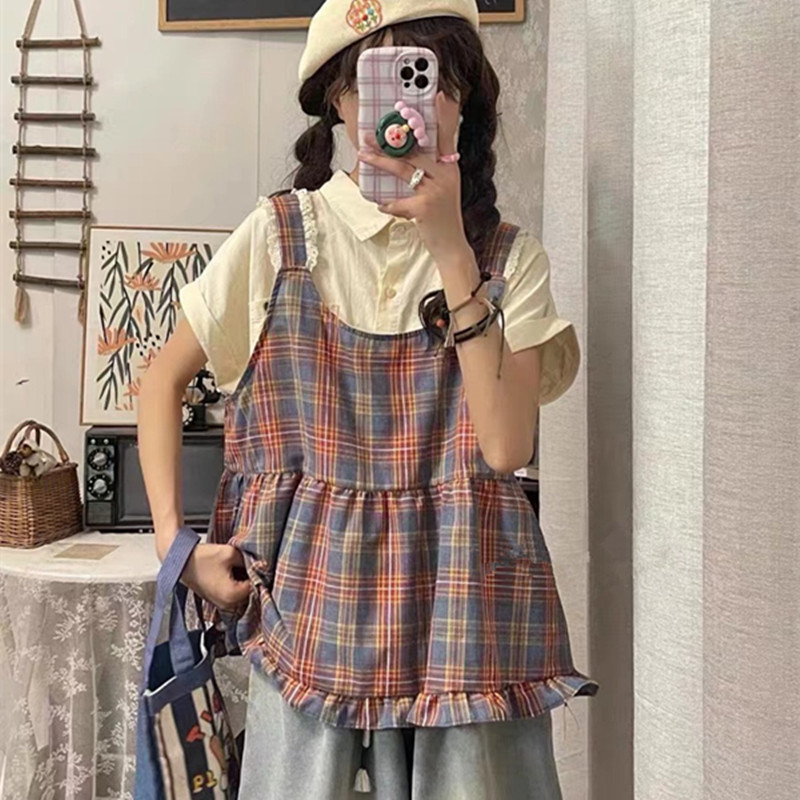| nameOriginal | Vintage Mori Girl Style Plaid Doll Shirt Muffled Vest with Sling Small Shirt Women's Stacked Blouse |