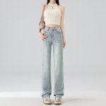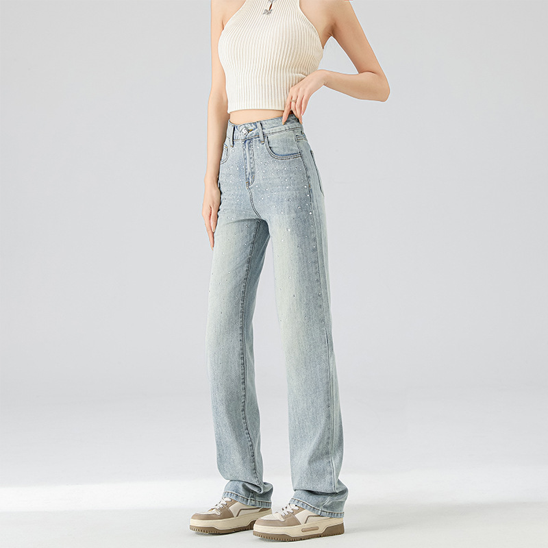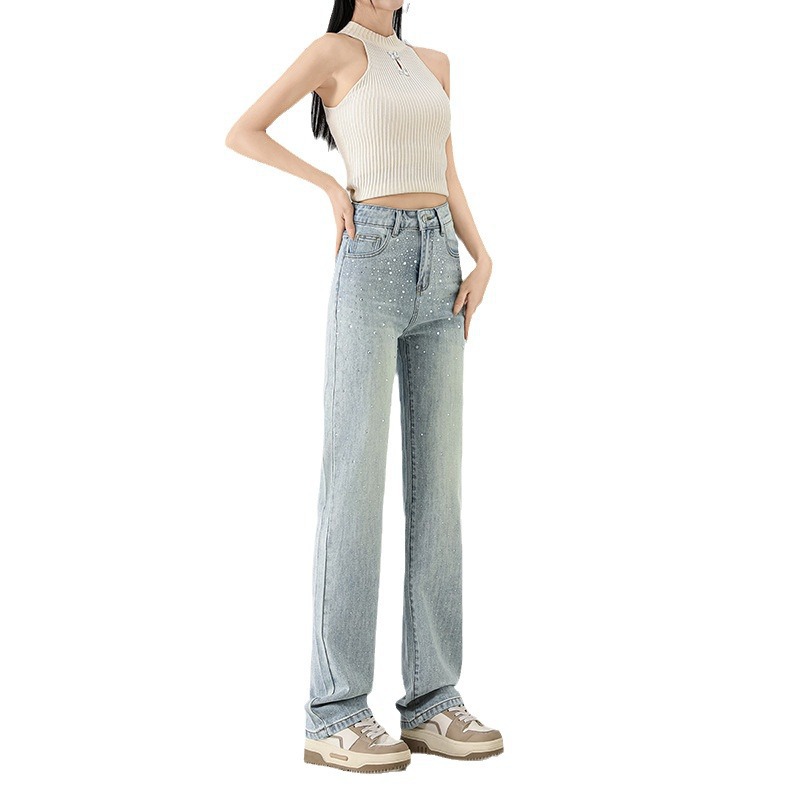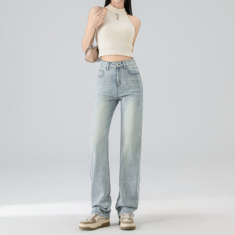 Vintage Narrow Wide Leg Pants Jeans Women’s Summer Thin High Waist Slimming Beaded Design Sense Small Straight Pants