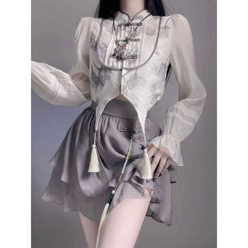 | nameOriginal | Vintage National Style New Chinese Cheongsam suit Women's Summer New Fashionable Slimming Top Skirt Two-piece Set |