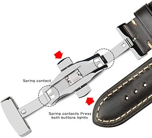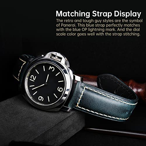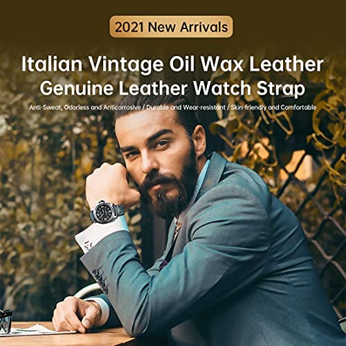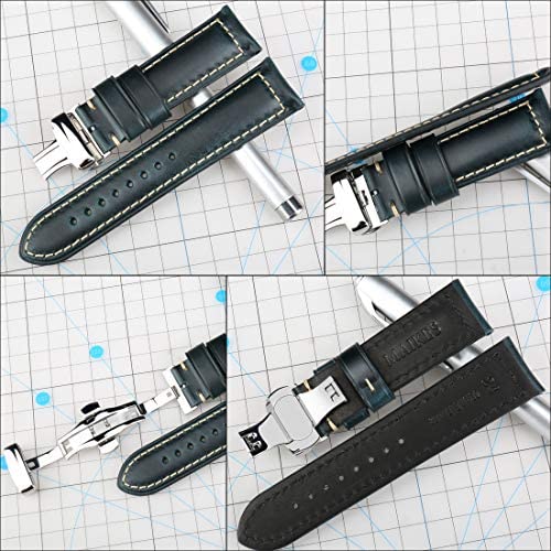 REZERO Watch Band, Vintage Oil Wax Leather Watch Straps 18mm 19mm 20mm 21mm 22mm 23mm 24mm 26mm Watch Belt for Men Women, Blue+Butterfly Buckle, Band Width 22mm, Traditional