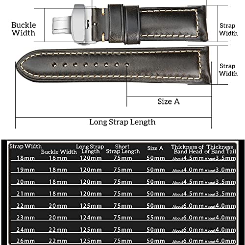 Vintage Oil Wax Leather Watch Band with Butterfly Buckle in Blue, available in various sizes from 18mm to 26mm. Suitable for both men and women.