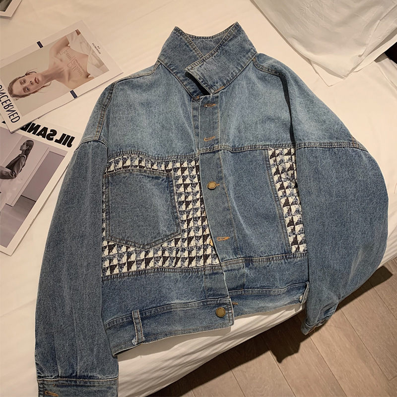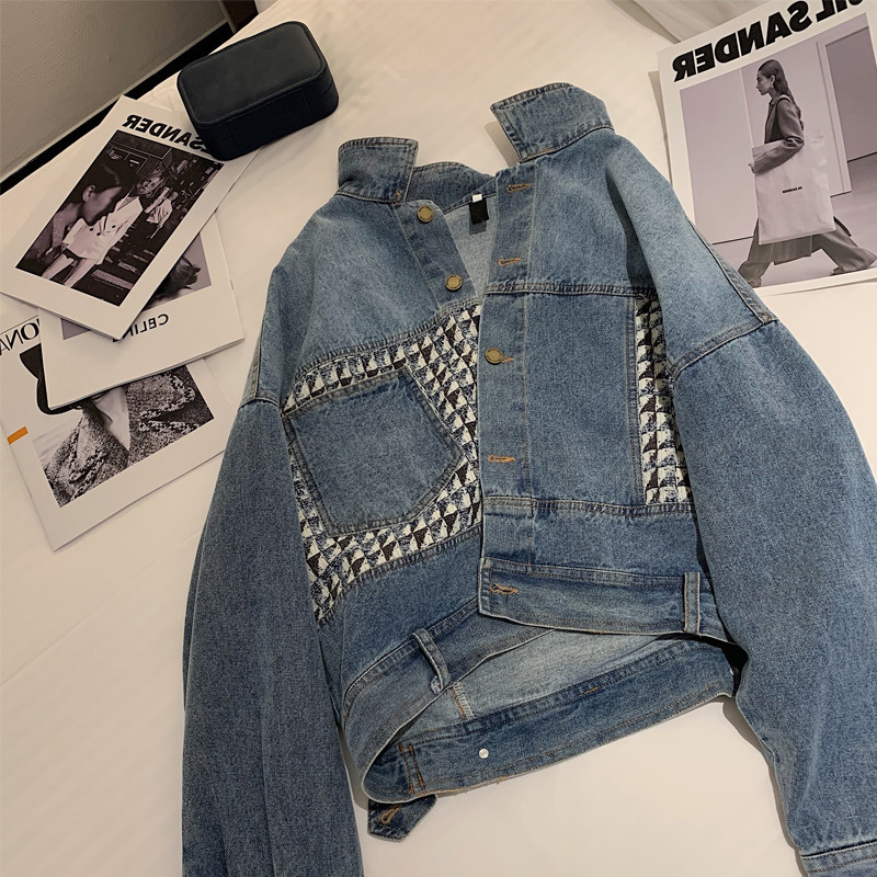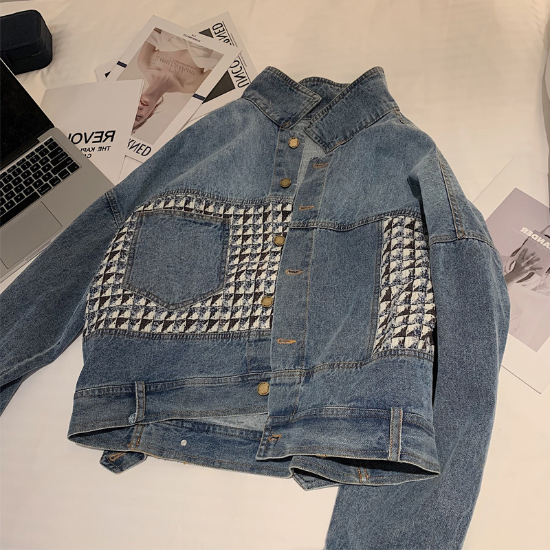 | nameOriginal | Vintage Plaid Stitching Korean Style 2024 New Spring and Autumn Denim Short Coat Hong Kong Style Small Top All-match Popular |