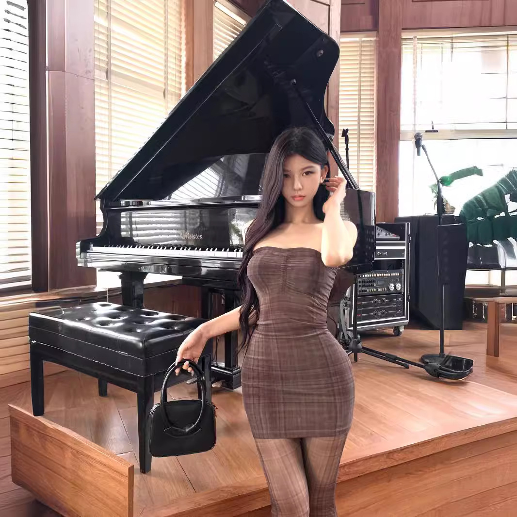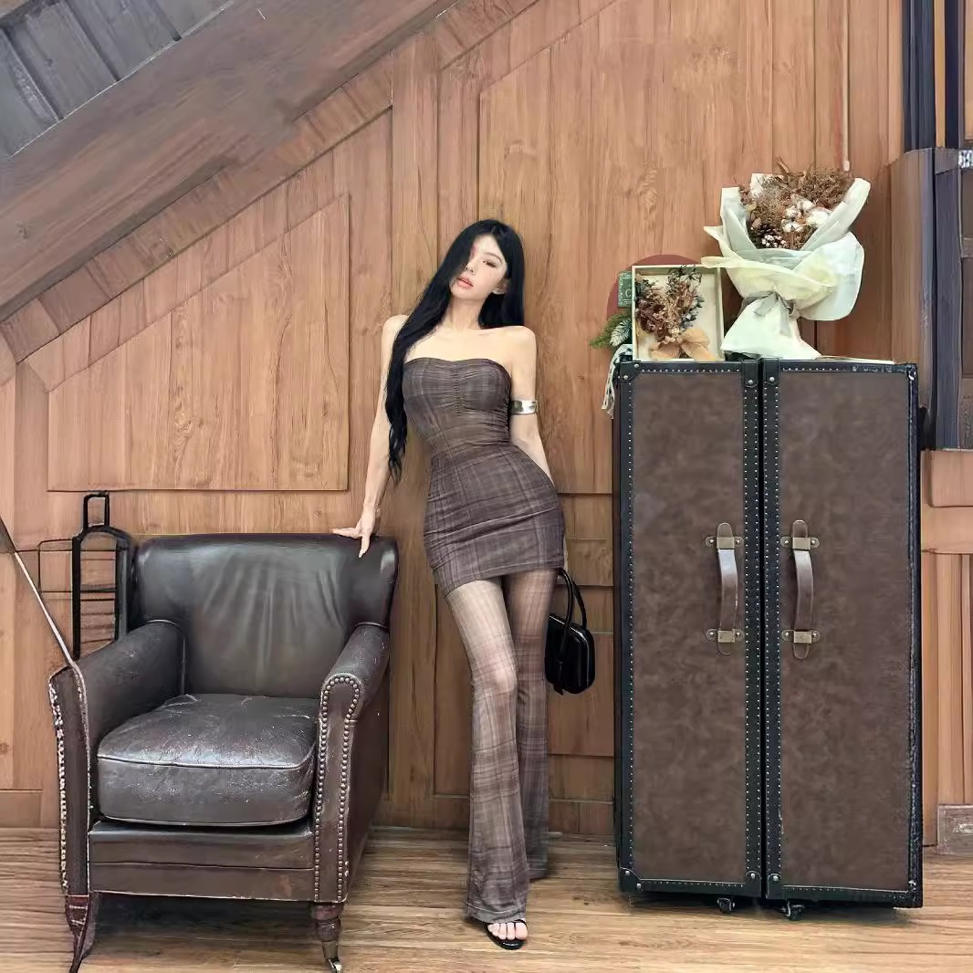 | nameOriginal | Vintage Plaid Tube Top dress Women's Summer Pure Hot Girl suit Micro-transparent High Waist Casual Flared Pants Two-piece Set |