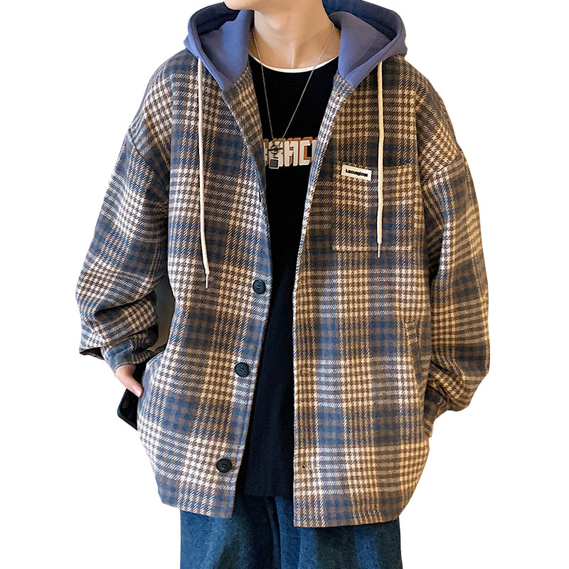 | nameOriginal | Vintage Plaid Woolen Hooded Jacket Men's Spring and Autumn Loose plus size Fat Men's All-match Jacket for Teenagers |