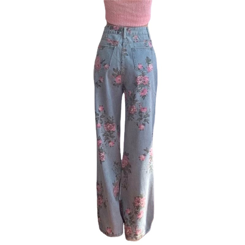 | nameOriginal | Vintage Printed Jeans Women's Spring and Autumn Design Sense Niche Loose High Waist Straight Wide Leg Pants High Street Ins Trendy |