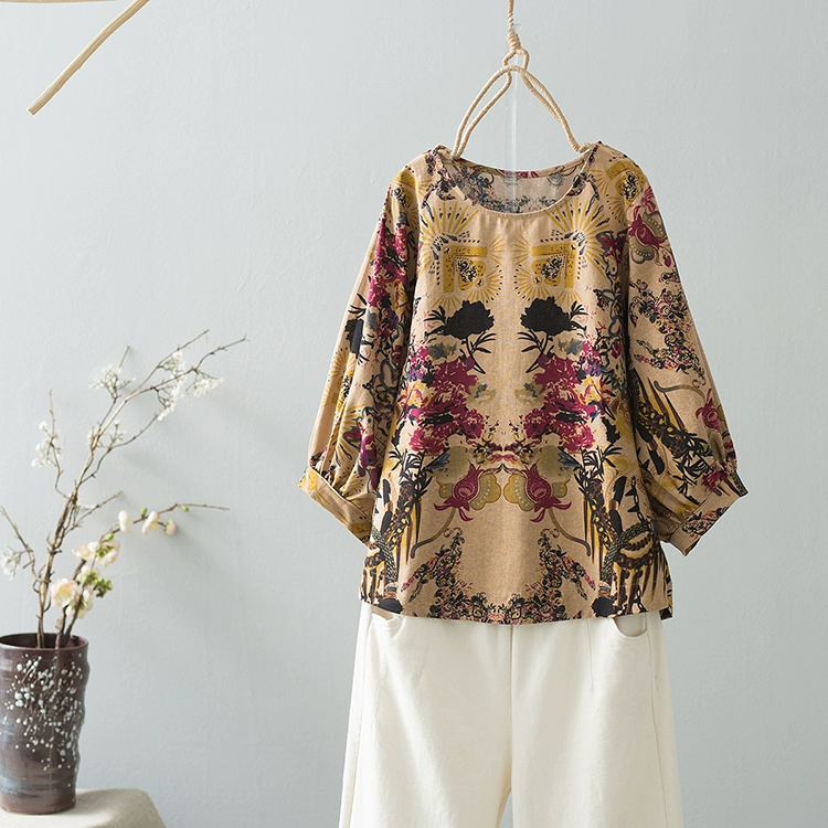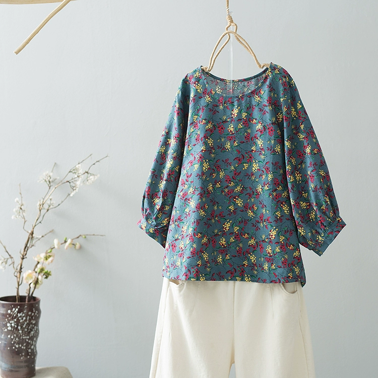 | nameOriginal | Vintage printed lantern sleeve casual linen T-shirt |