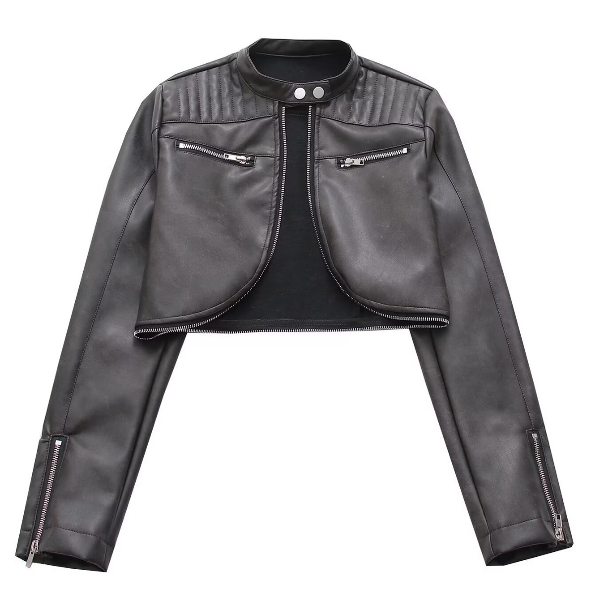Vintage PU Leather Jacket Women's 2024 Early Spring New American Style Spice Girl Style Standing Collar Zipper Short Motorcycle Leather Jacket