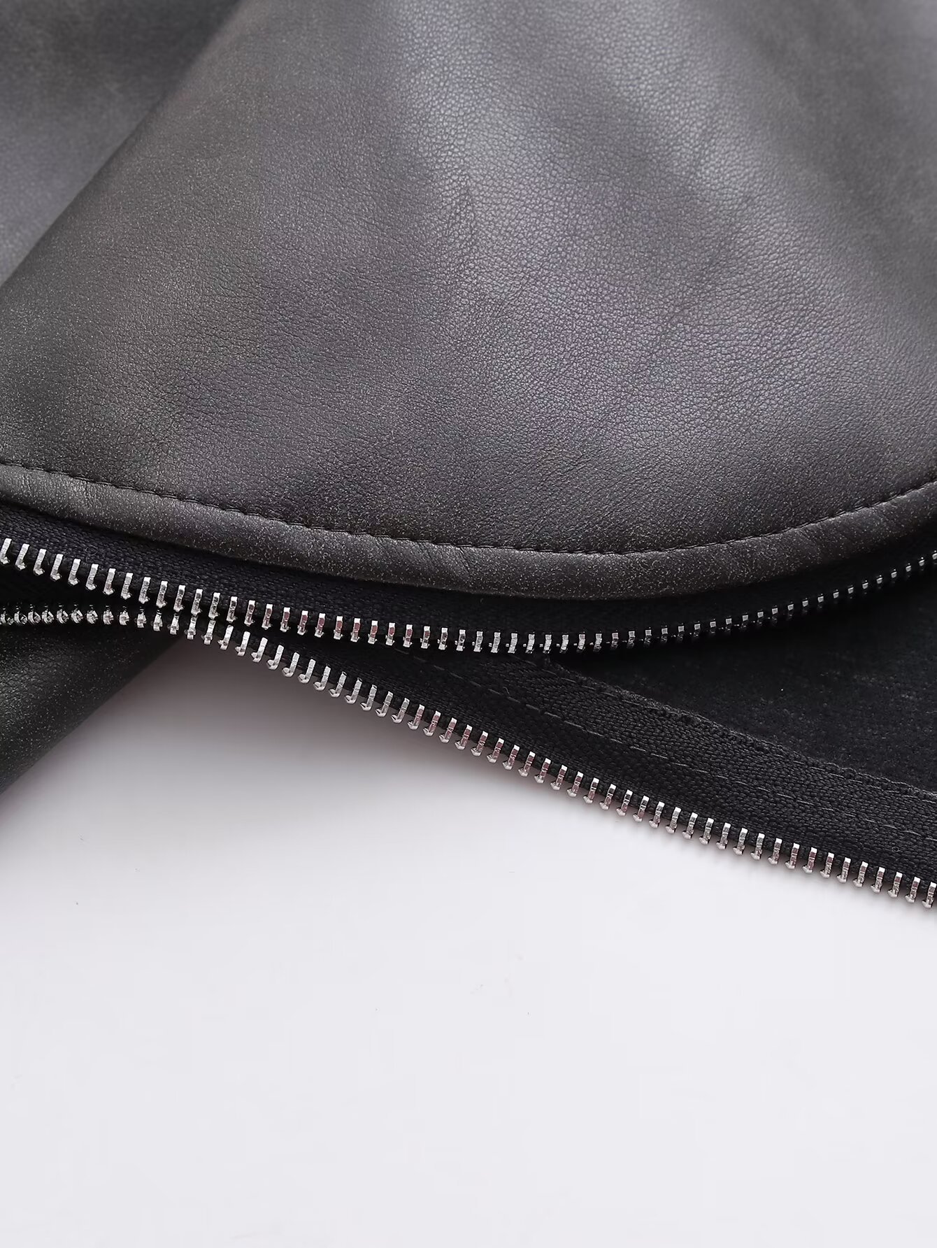 Vintage PU Leather Jacket Women’s 2024 Early Spring New American Style Spice Girl Style Standing Collar Zipper Short Motorcycle Leather Jacket