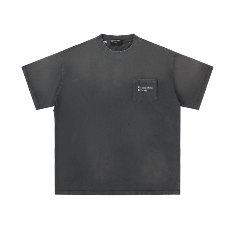 Vintage ripped soft wash retro pocket short-sleeved T-shirt