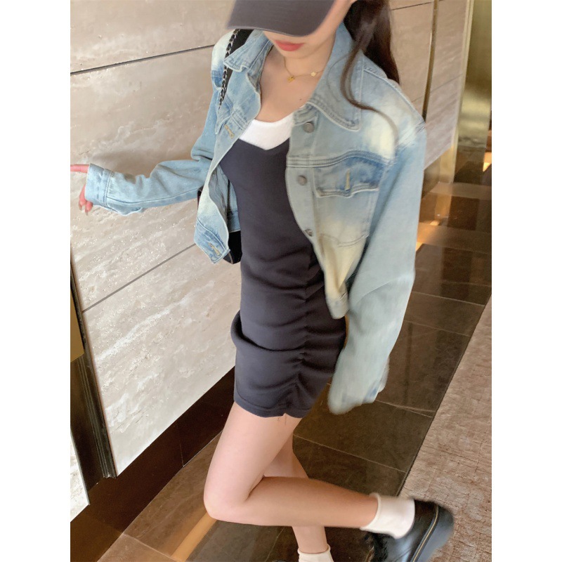 | nameOriginal | Vintage Short Denim Jacket Women's Spring and Autumn New Korean Style Casual All-match Long Sleeve Outer Shirt Top Trendy Jacket |