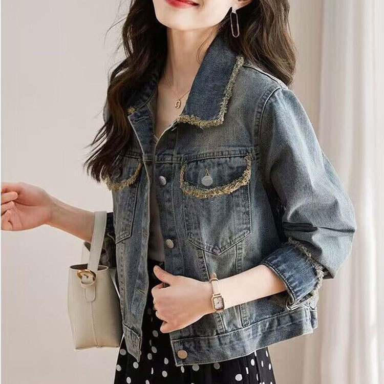 Vintage Short Denim Jacket Women's Spring and Autumn New Small Casual All-match Jacket Design Sense Top